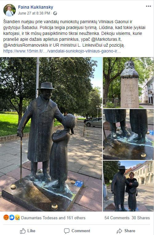 Šiandien nuėjau prie vandalų nuniokotų paminklų Vilniaus Gaonui ir gydytojui Šabadui. Policija teigia pradėjusi tyrimą….