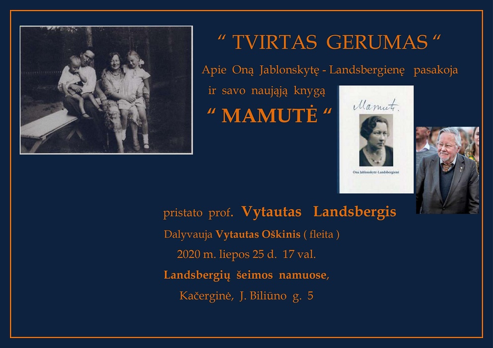 Renginys vyks 2020 m Liepos 25 d.17 val. Landsbergių Namuose J.Biliūno g.5 ,Kačerginėje.