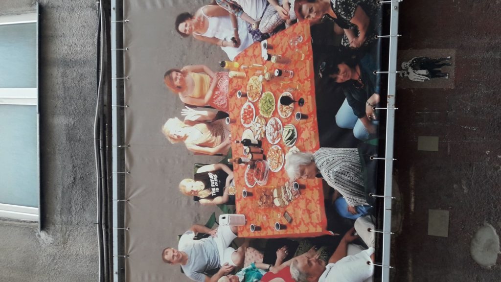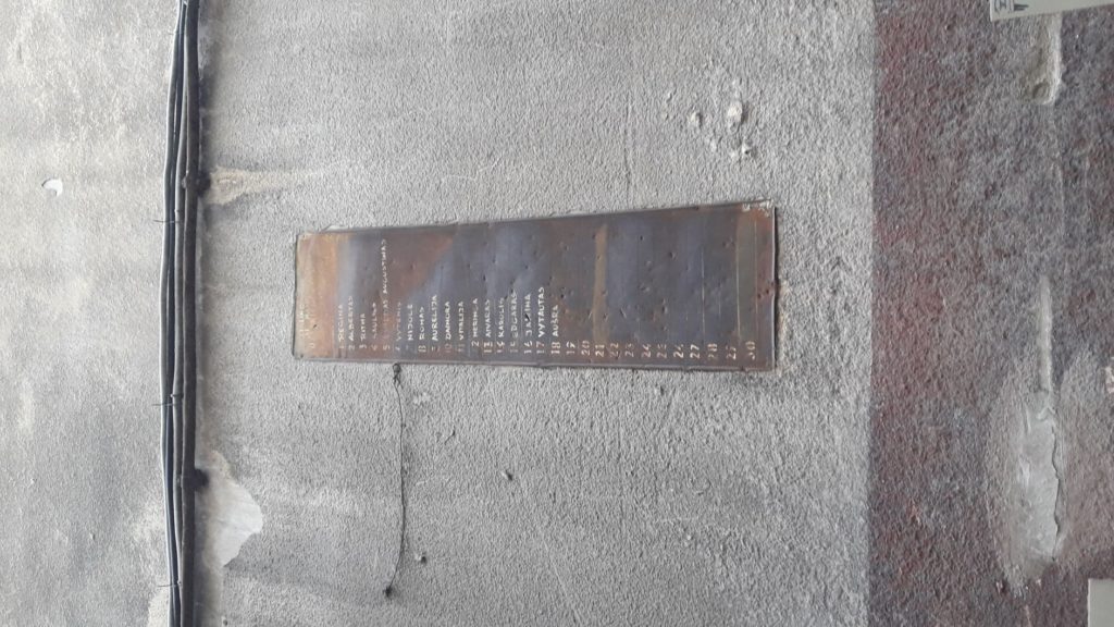 Ši lenta kabėjo tuščia, mūsų vardai atsirado po kaimynų vakarienės, kurios nuotrauką matote. Tarpukariu, prasidėjus Stalino režimui ir represijoms reikėjo greitai surasti žmones, kuriuos reikia suimti, represuoti išvežti. Tų gyventojų pavardės buvo rašomos į tokias lentas. Čia informacija buvo matoma. Bet padažnėjus žmonių dingimui, tokios lentos nepadėjo, o atvirkščiai – demaskuodavo jų veiklą. Todėl lentos buvo uždraustos, liepta jas nukabinti, o „Kieme“ ji išliko. Lentos buvo neilgai , keletą metų, greitai jų nebeliko.