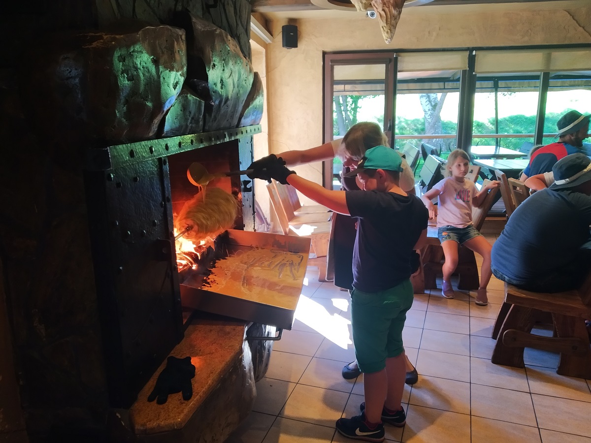 Įvyko dvi ekskursijos – viena į Anykščių ,,Safari parką”, antroji – į Druskininkus, kur vaikai mokėsi kepti ir Lietuvos kulinariniu paveldu vadinamą lietuvišką šakotį,- matote nuotraukoje.