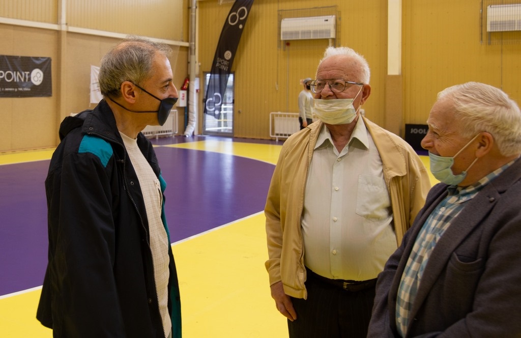 Akimirka iš stalo teniso makabiados. Tolimesniame plane – Aleksandr Fukson (iš kairės) – varžybų nugalėtojas.