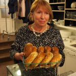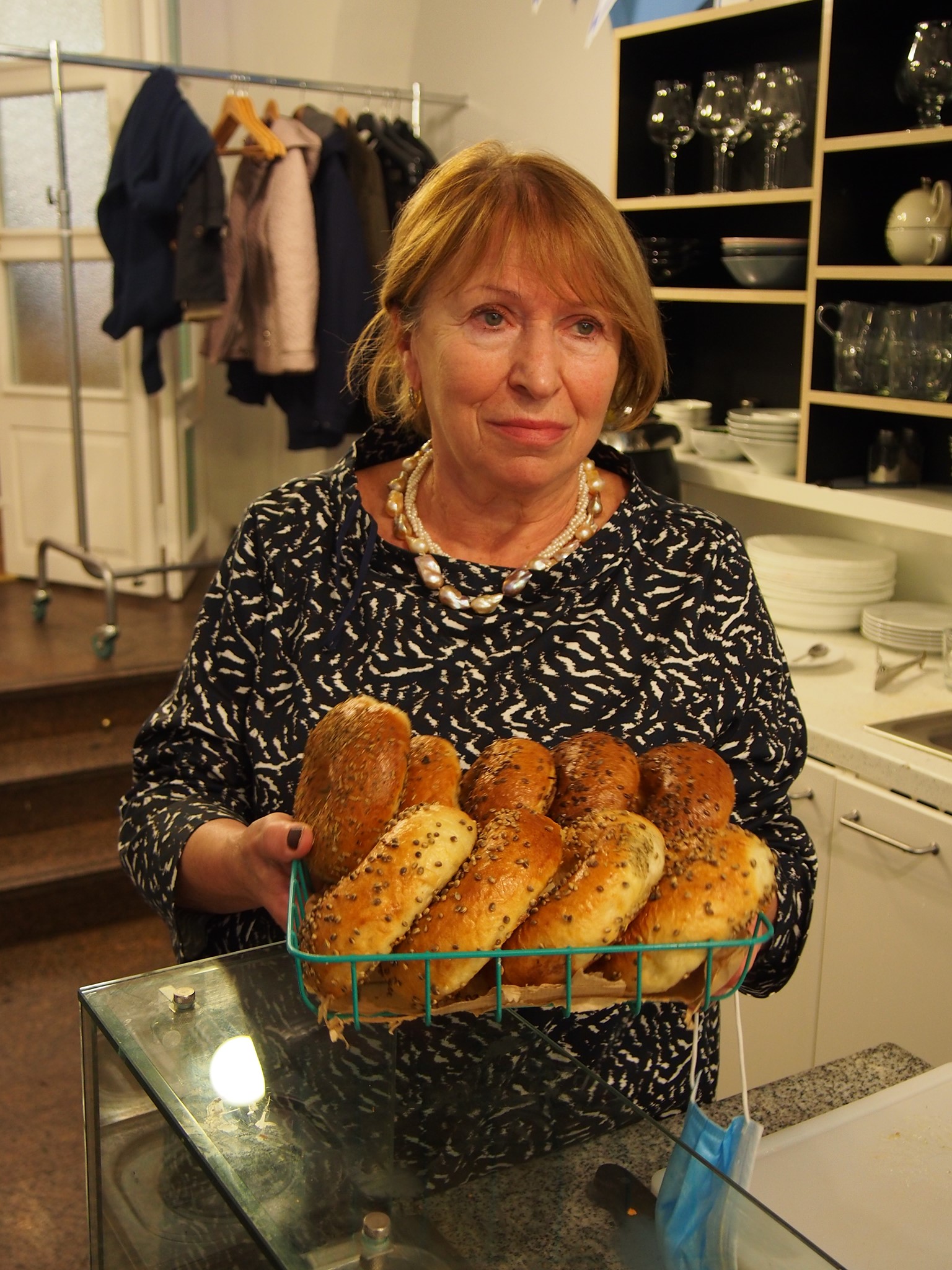 Beigelių krautuvėlės vyriausioji kepėja Riva Portnaja mokė norinčius kepti chalas.