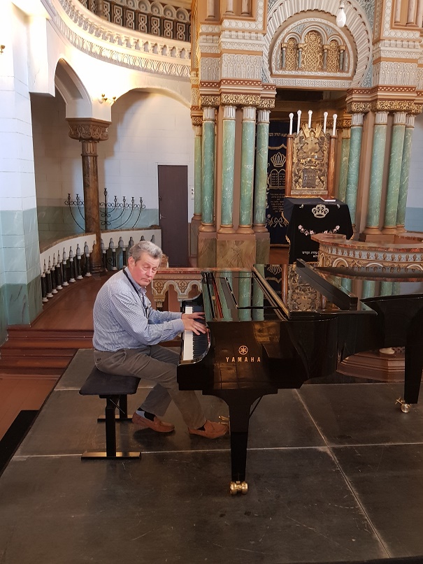 Rojalio garsų skambesio bandymas sinagogoje. Puiki sinagogos akustika.
