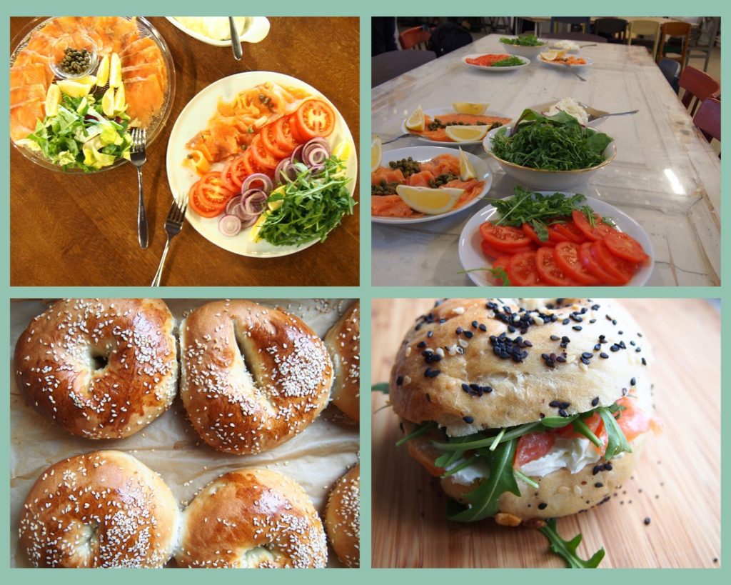 Pasibaigus pasninko laikui gaminami lengvesni šventiniai tradiciniai patiekalai. Vienas populiariausių patiekalų yra beigel lox – garsusis beigelis su lašiša (jidiš kalba).