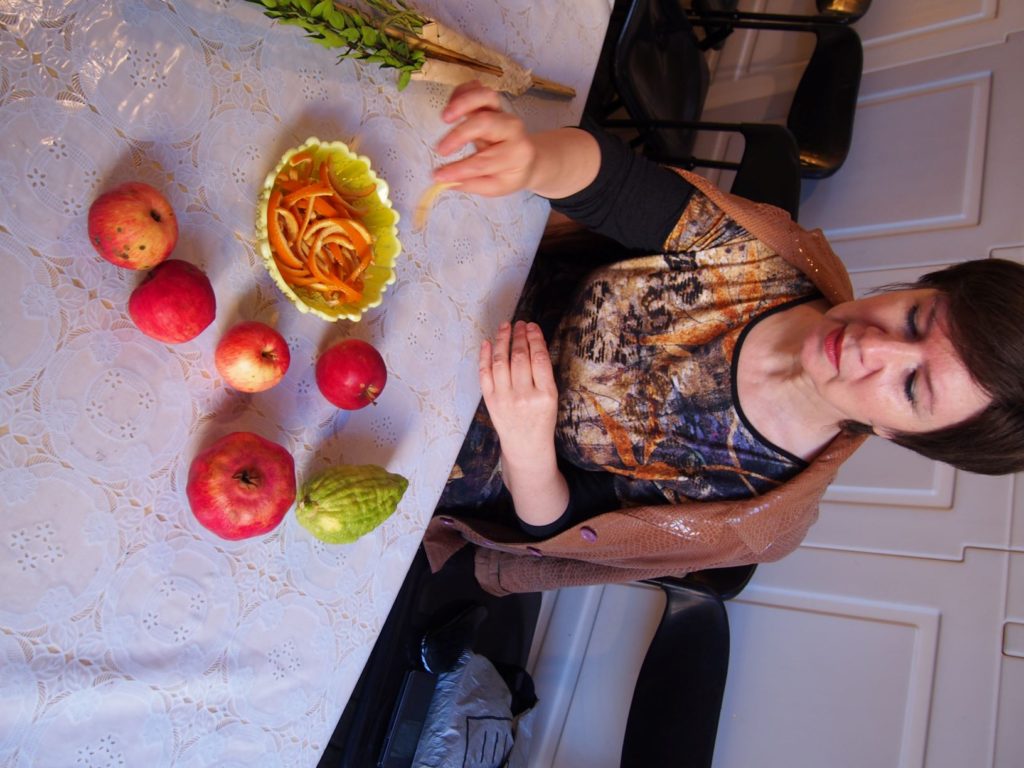 Sukkot šventės simboliai ir cukatai iš apelsinų žievelių