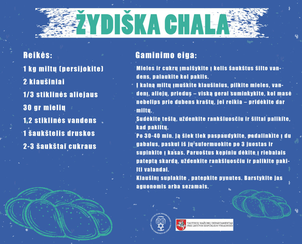 Renginį organizuoja Lietuvos žydų (litvakų) bendruomenė. Šis edukacija parengta įgyvendinant projektą Žydų litvakų kulinarinio paveldo sąsajos su pasaulio virtuvėmis. Už paramą dėkojame Tautinių mažumų departamentui prie Lietuvos Respublikos Vyriausybės.