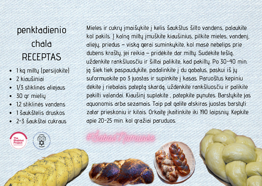 Vakare, lapkričio 6 d. saulei nusileidus  Šabatą pasitikime kartu su Vilniaus žydų religinės bendruomenės vadovu Simu Levinu ir Lietuvos žydų (litvakų) bendruomenės pirmininke Faina Kukliansky su anūke Estera. Chalas mokys kepti Beigelių krautuvėlės vyriausioji kepėja Riva Portnaja. Mus sveikina Izraelio valstybės ambasadorius Lietuvoje Yossef Levy,  Šiaulių krašto žydų bendruomenė, pasaulinio chalų kepimo kartu projekto Shabbos project iniciatorius Rabinas Dr. Warren Goldstein.