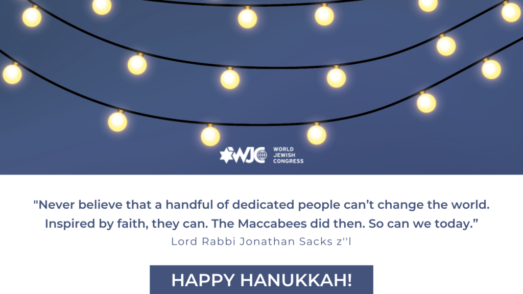 I would like to wish all the Jewish communities of the World Jewish Congress family a Happy Hanukkah. My hope is that we can all find happiness and comfort in this year’s Festival of Light, and that it will help us banish the darkness of this difficult period. We will get through this together, as one people, because we are strongest when we stand together—at the WJC we believe all Jews are responsible for one another.