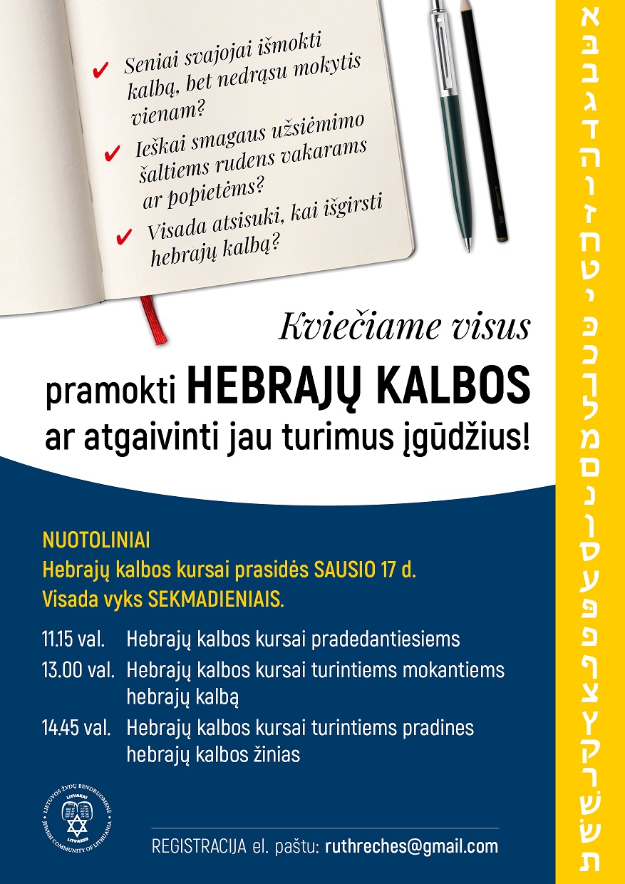 Kviečiame pramokti hebrajų kalbos ir atgaivinti turimus įgūdžius