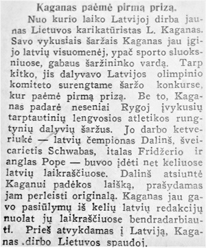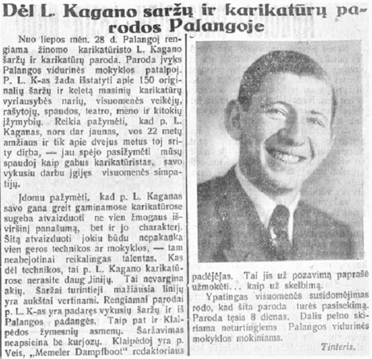 Po kelių dienų laikraštyje atsiranda straipsnis apie pajūrį, kur aprašoma ir L. Kagano paroda: