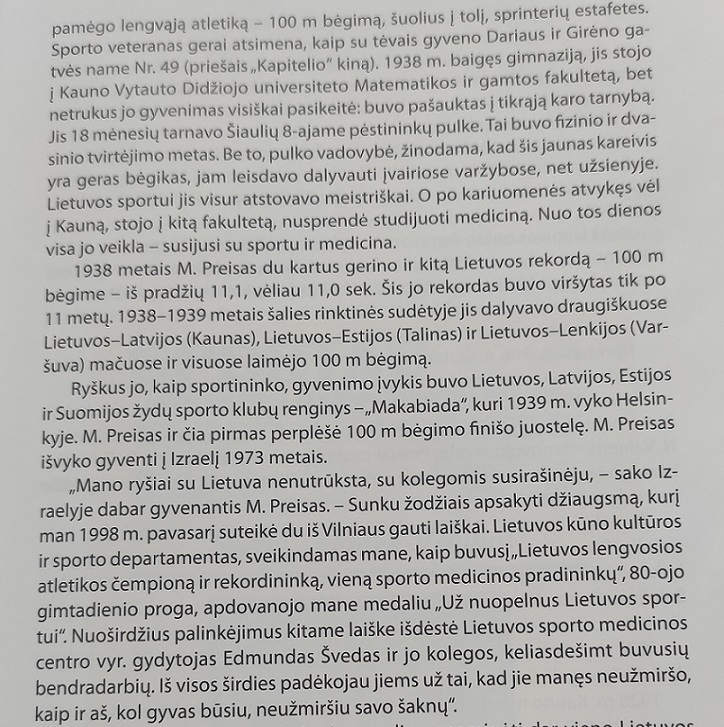 ,,Makabi” judėjimas tarpukario Lietuvoje apie Mykolą Preisą rašė, kad jo, talentingo bėgiko makabiečio sportinė žvaigždė sužibo 1938m.