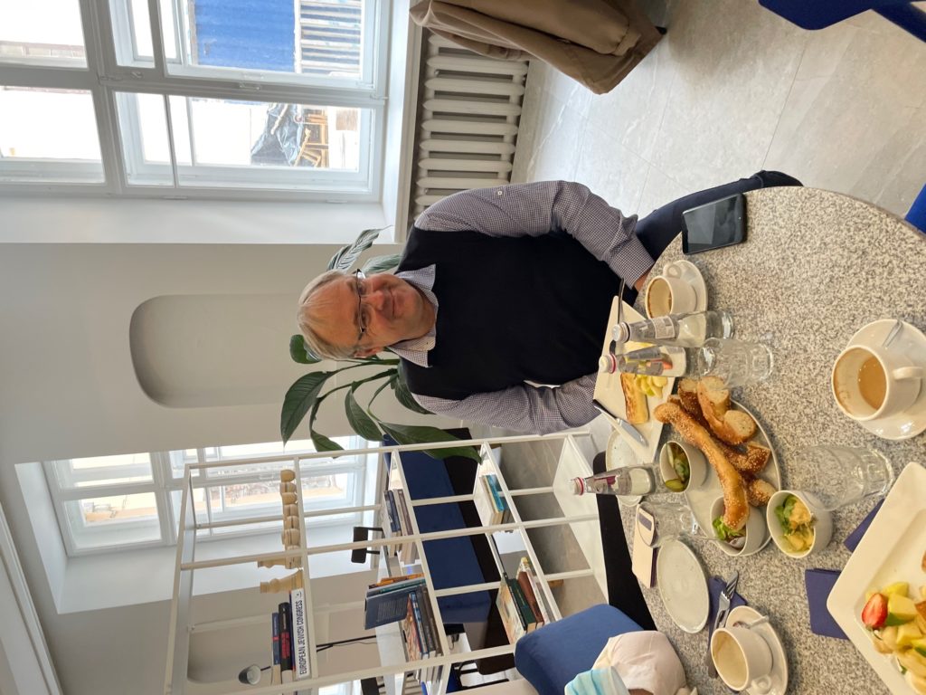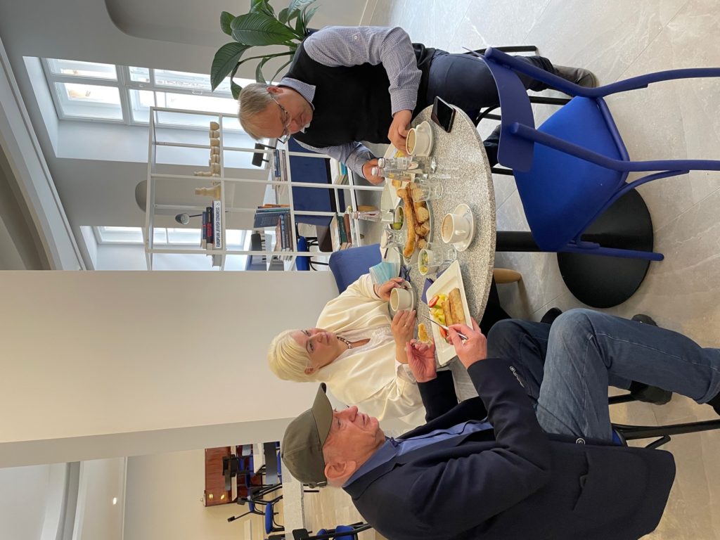 Pirmąjį vasaros rytą minjano nariai pusryčiavo Beigelių krautuvėlėje kartu su pirmininke Faina Kukliansky.