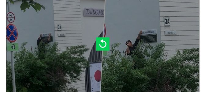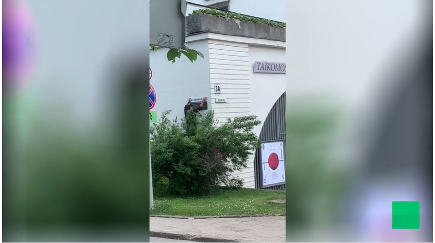 Trečiadienį užfiksuota, kaip ant Trispalvės alėjos lentelės klijuojamas senasis pavadinimas – Kazio Škirpos. Vaizdo įraše matosi, kaip vyras lygina lipduką, o tada, matyt, apačioje stovintiems bičiuliams šypsosi ir rodo iškeltą nykštį. Tokių atvejų jau būta, tuomet lipduką nuėmė Vilniaus miesto savivaldybė. Tai žadama padaryti ir šįsyk. Šis vaizdas užfiksuotas trečiadienį apie pietus. Lipdukas užklijuotas ant alėjos pavadinimo lentelės, kuri kabo ant Taikomosios dailės muziejaus pastato, esančio Trispalvės alėjos ir Arsenalo gatvių sankirtoje. „Veiksime kaip ir praėjusius kartus – nuimsime lipduką, kreipsimės į pareigūnus“, – 15min teigė Vilniaus mero patarėjas Karolis Vaitkevičius. Panašių atvejų jau yra buvę – pernai pirmosiomis sausio dienomis toks lipdukas užklijuotas net dukart. Kaip tuomet BNS sakė buvęs savivaldybės administracijos direktorius Povilas Poderskis, savivaldybė dukart parašė skundus prokuratūrai: „Vertiname šiuos veiksmus neigiamai“. Diplomato bei karininko K.Škirpos vardo alėją sostinės savivaldybė 2019 m. liepos pabaigoje pervadino į Trispalvės alėją. Tokį sprendimą Vilniaus valdžia grindė viešai deklaruotomis K.Škirpos antisemitinėmis pažiūromis. Trečiadienį taip pat Vytautas Sinica išplatino pranešimą, kuriame piktinamasi, kad neleista pakabinti atminimo lentos K.Škirpai. „Birželio 22 dieną vykusio Birželio sukilimo pagerbimo mitingo metu visuomenei pristatyta jaunimo sambūrio „Pro Patria“ lėšomis pagaminta atminimo lenta Sukilimo organizatoriui Kaziui Škirpai. Ją buvo numatyta pakabinti ant Okupacijų ir laisvės kovų muziejaus pastato, kuriame K. Škirpa dirbo 1918 metais. Visgi lentos kabinti neleista – priešingai įprastoms procedūroms, policija įspėjo tokiu atveju įsikišianti ir nutrauksianti darbus jėga.