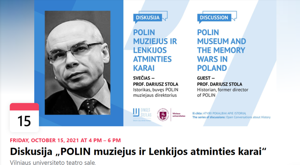 Dariusz’as Stola pasakos apie muziejaus pasiekimus ir apie tai, kaip visa pasikeitė prasidėjus šalį suskaldžiusiems kultūriniams karams. Pokalbio metu svarstysime, kaip valstybinė atminties politika atmeta kritišką praeities vertinimą kaip „gėdinimo metodiką“. Apmąstysime, kaip tokie veiksmai veikia mus.