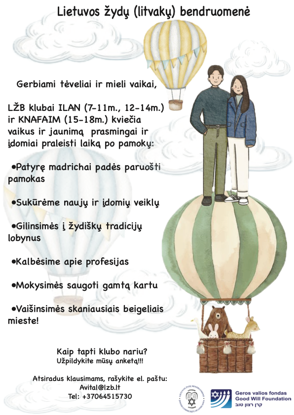 Klubai kviečia 2021-10-14 ← Tarptautinė bendruomenė sutinka su konkrečiais įsipareigojimais kovoti su Holokausto iškraipymais ir su antisemitizmu Sveikiname Borisą Traubą →