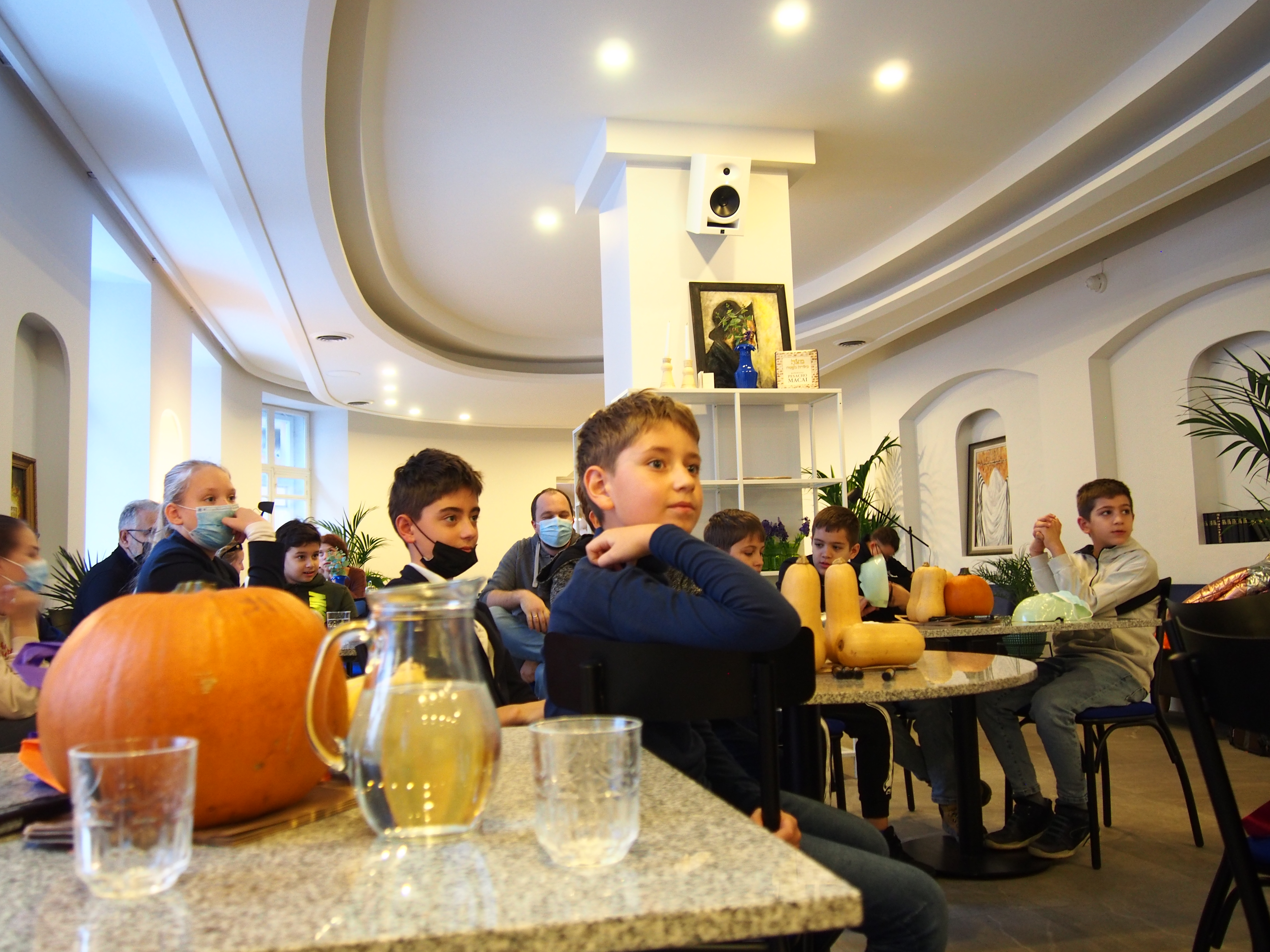 Penktadienio vakarą bendruomenėje vyko jau trečiasis #KinderTiš – vaikų stalas Beigelių krautuvėlėje. Vaikai kepė beigelius klevų sirupe ir dekoravo juos moliūgų sėklomis. Šventė vyko kartu su bičiuliais iš JAV ambasados Vilniuje. Gavome daug baisuokliškų dovanų, sužinojome viską apie Helovyno tradicijas ir laimingi pasitikome šabatą. Specialiai šios dienos proga apie Helovyno tradicijas, kostiumus, pokštus ir gąsdinimus bei moliūgus mums pasakos JAV Ambasada Vilniuje / U.S. Embassy Vilnius kultūros ataše Caitlin Nettleton ir kolegos.