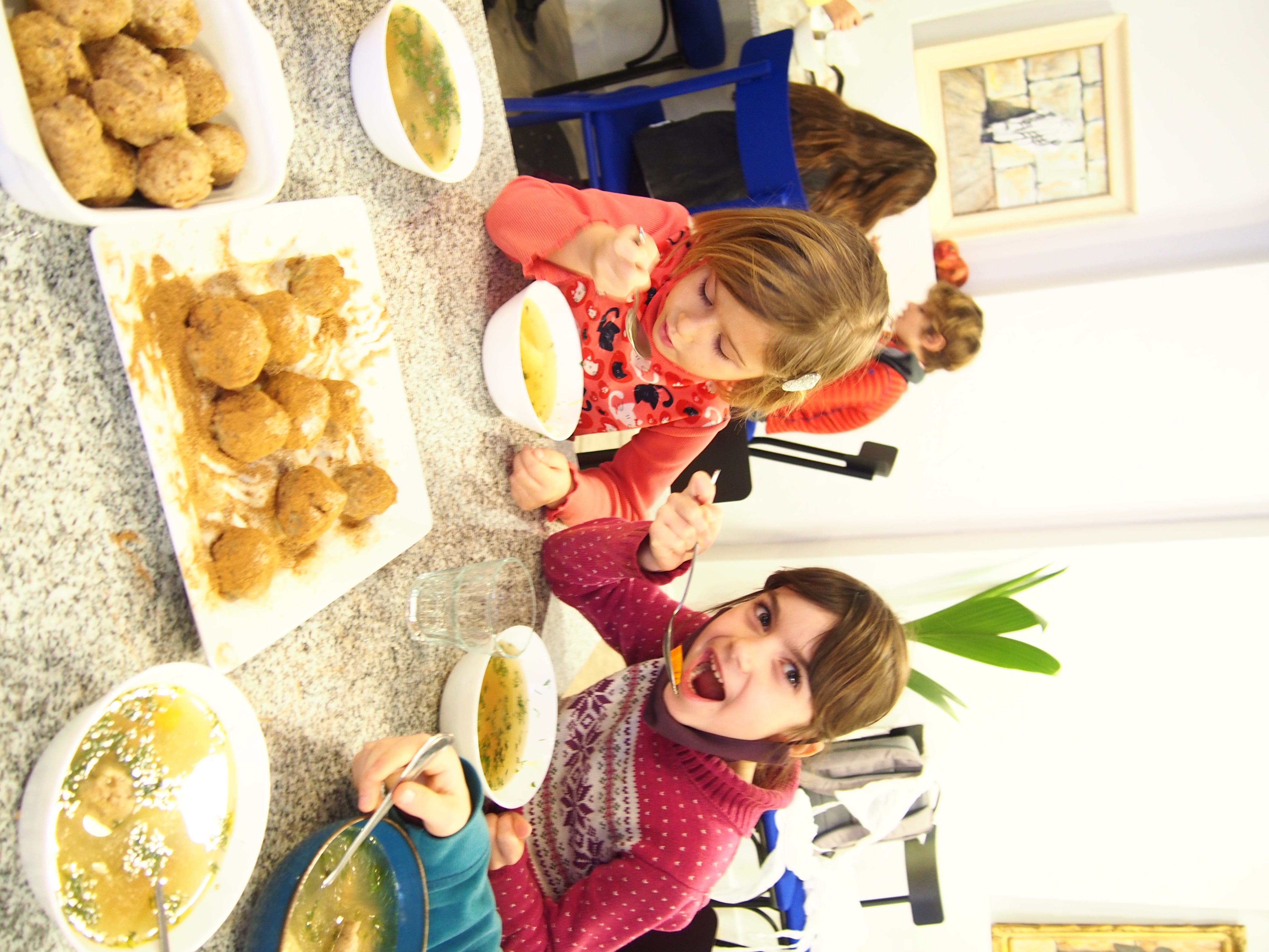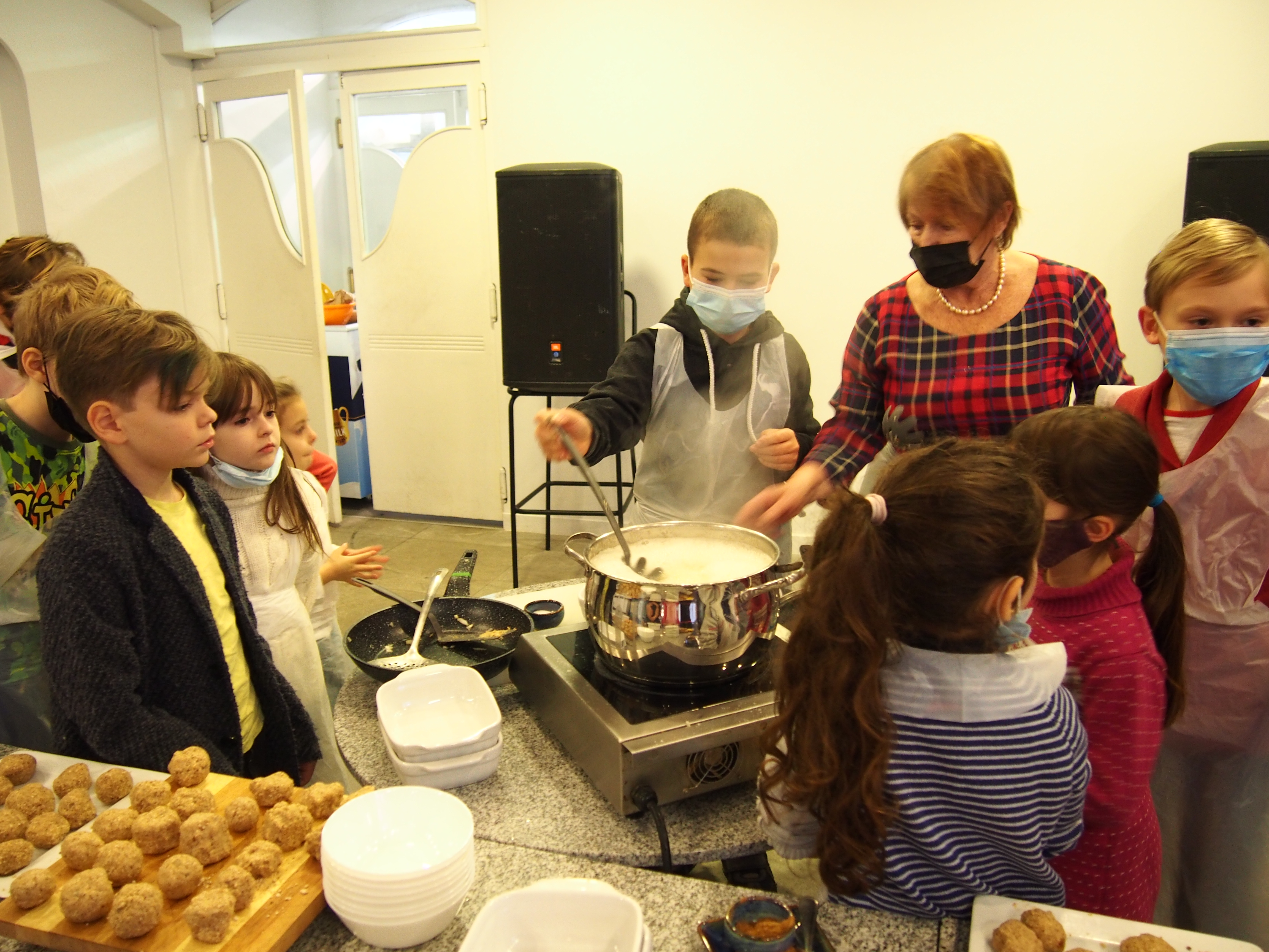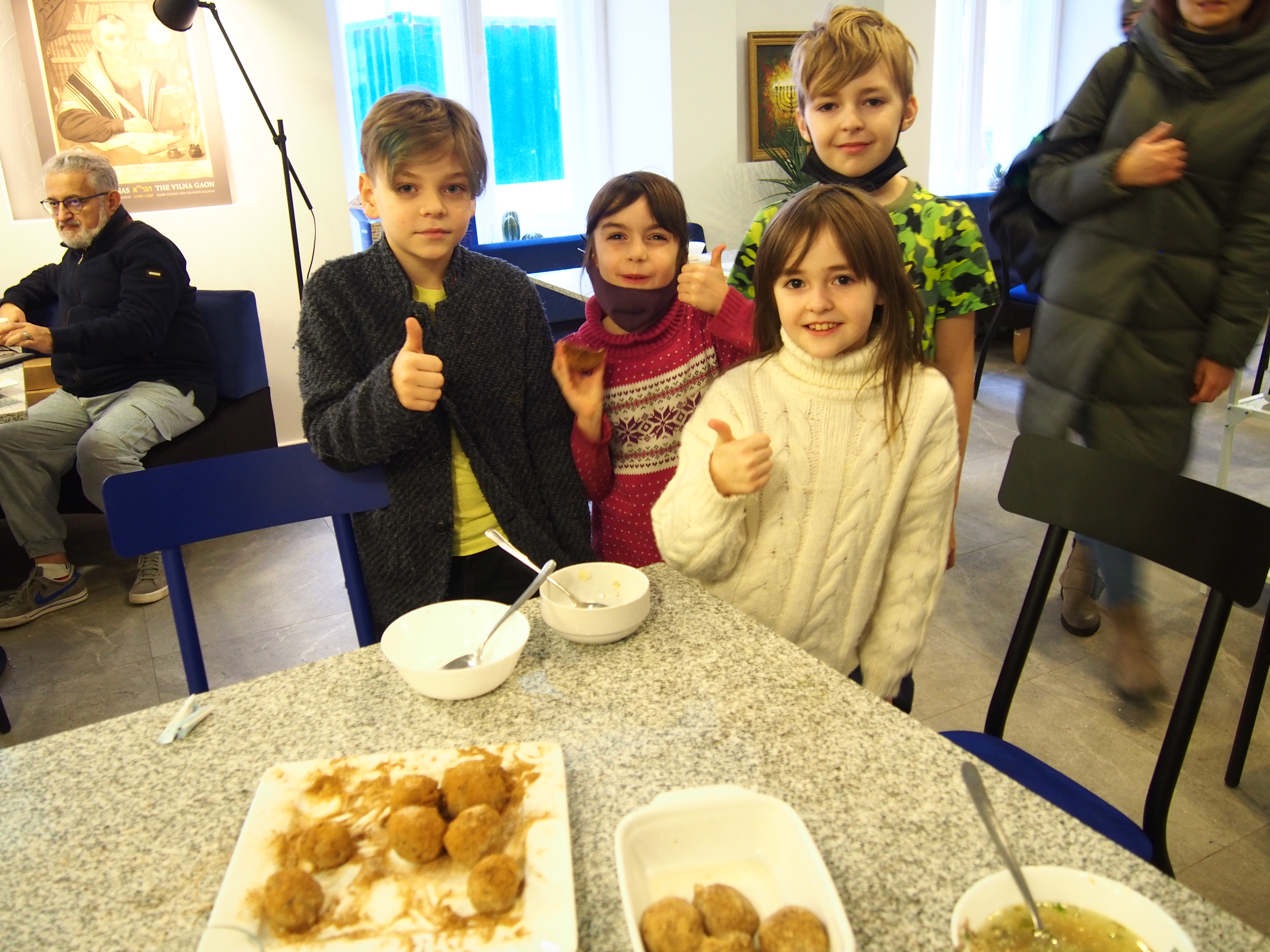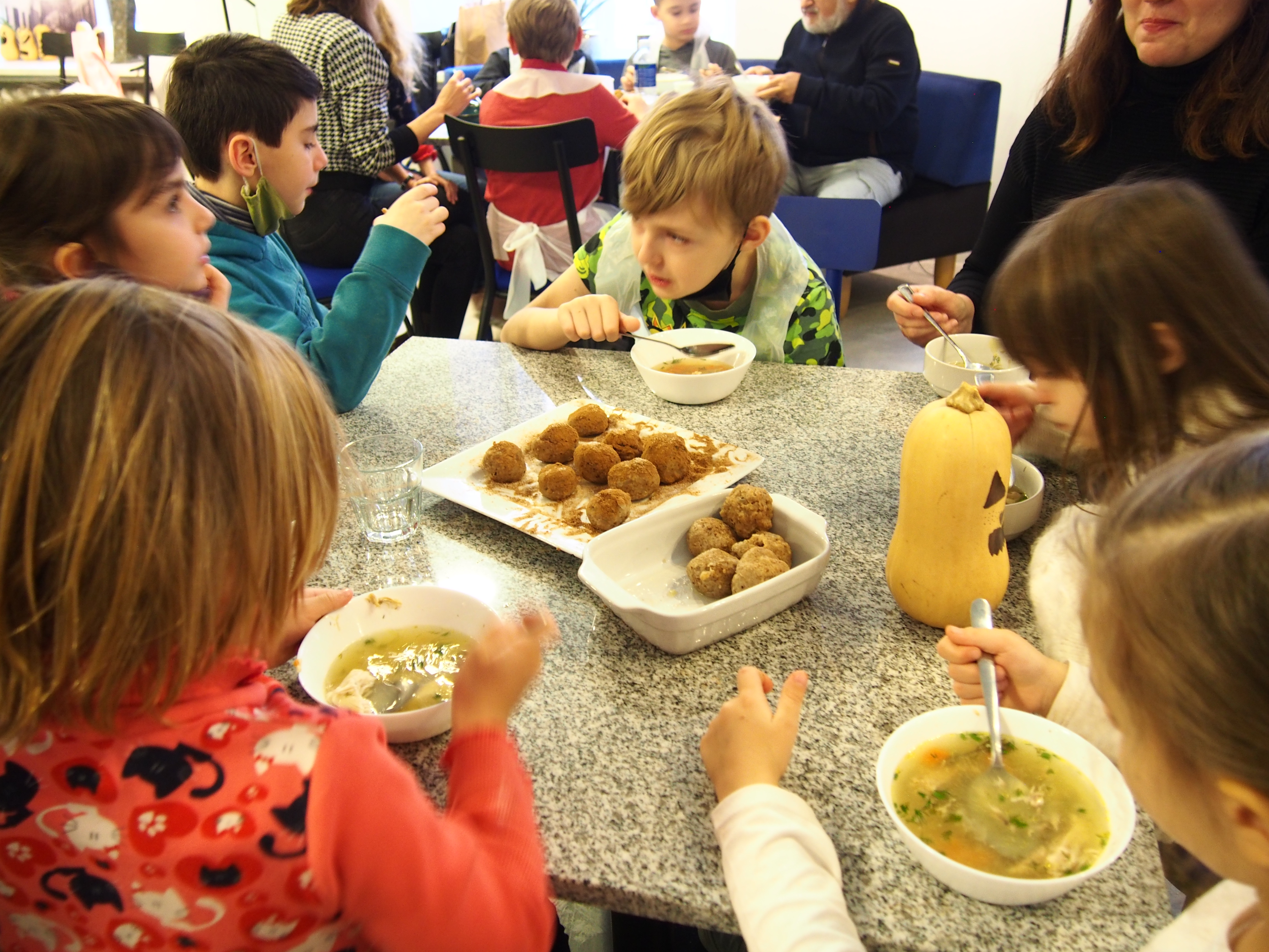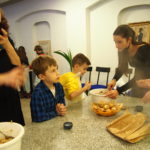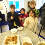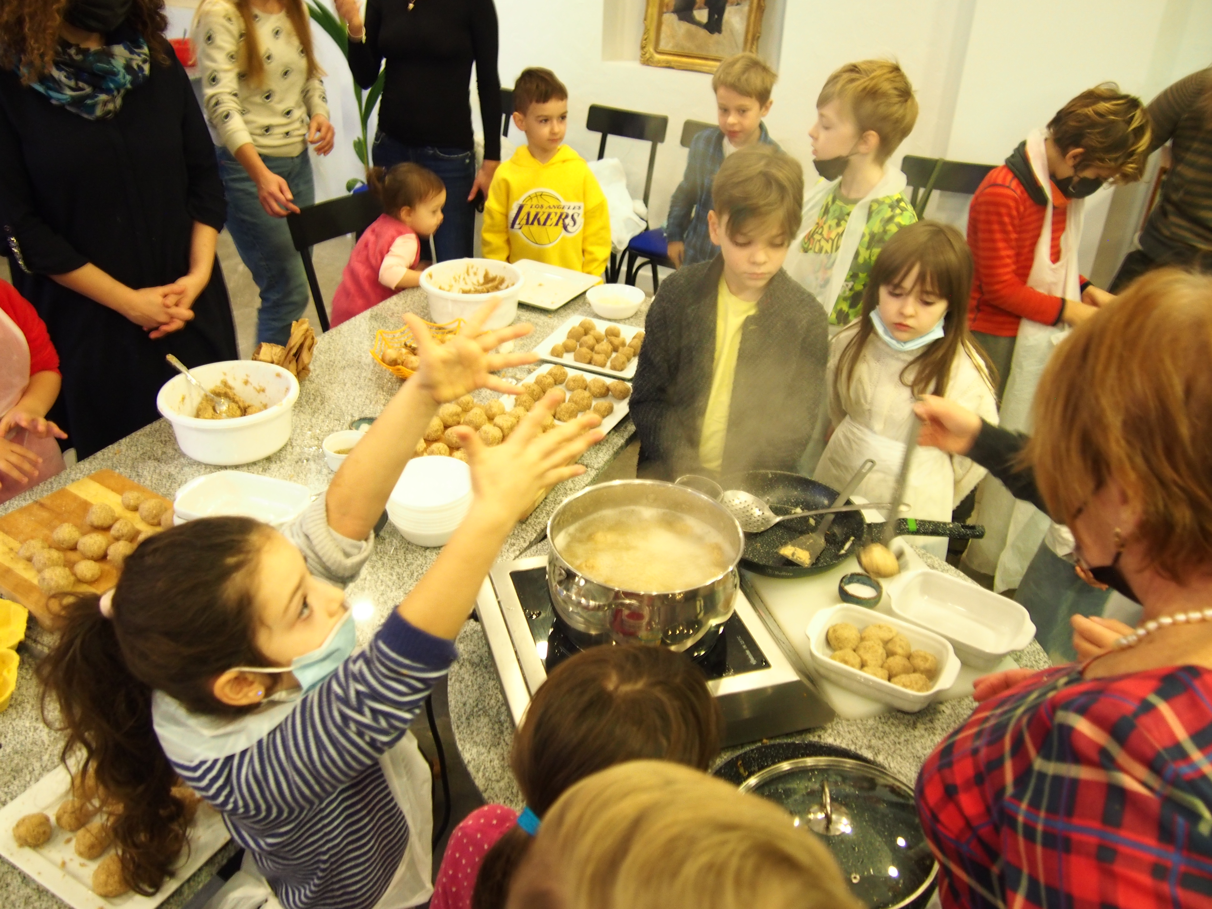 Nespėjome skaičiuoti nei vaikų nei maca kneidlach – virėm, kepėm, ragavom, prašėm pakartot, plojom balabostai Rivai už įmantrius receptus ir gerą nuotaiką. Taip prabėgo ketvirtas vaikų sekmadieninės mokyklėlės užsiėmimas #KinderTiš – vaikų stalas. Nuo 8 ryto jau virė višta puode – gaminome žydišką peniciliną – arba žydišką buljoną su macos kukuliais. Skanaus ir laukiame po dviejų savaičių edukacijoje “Chanukos Strabūklas”. #BalabostaRiva