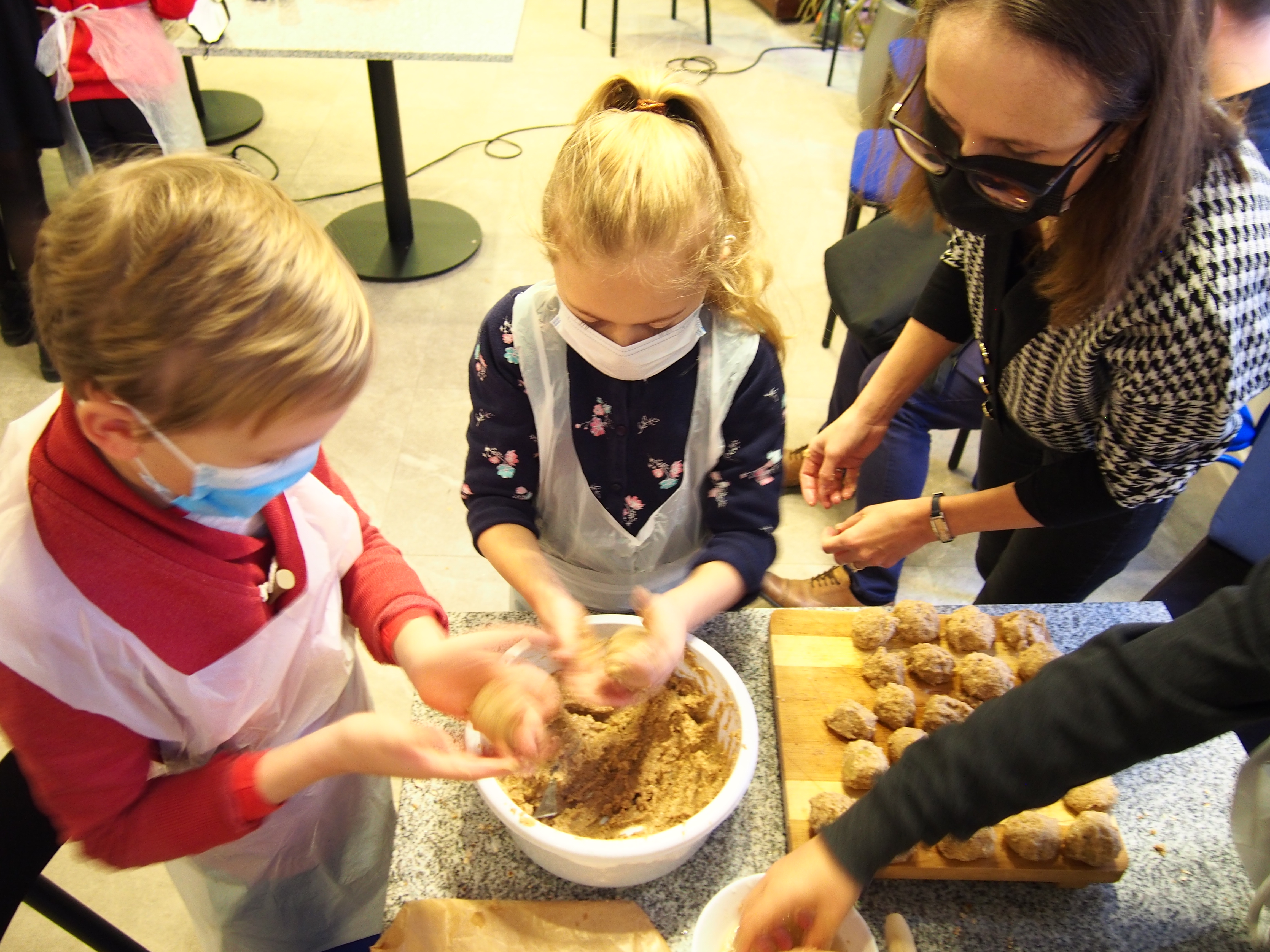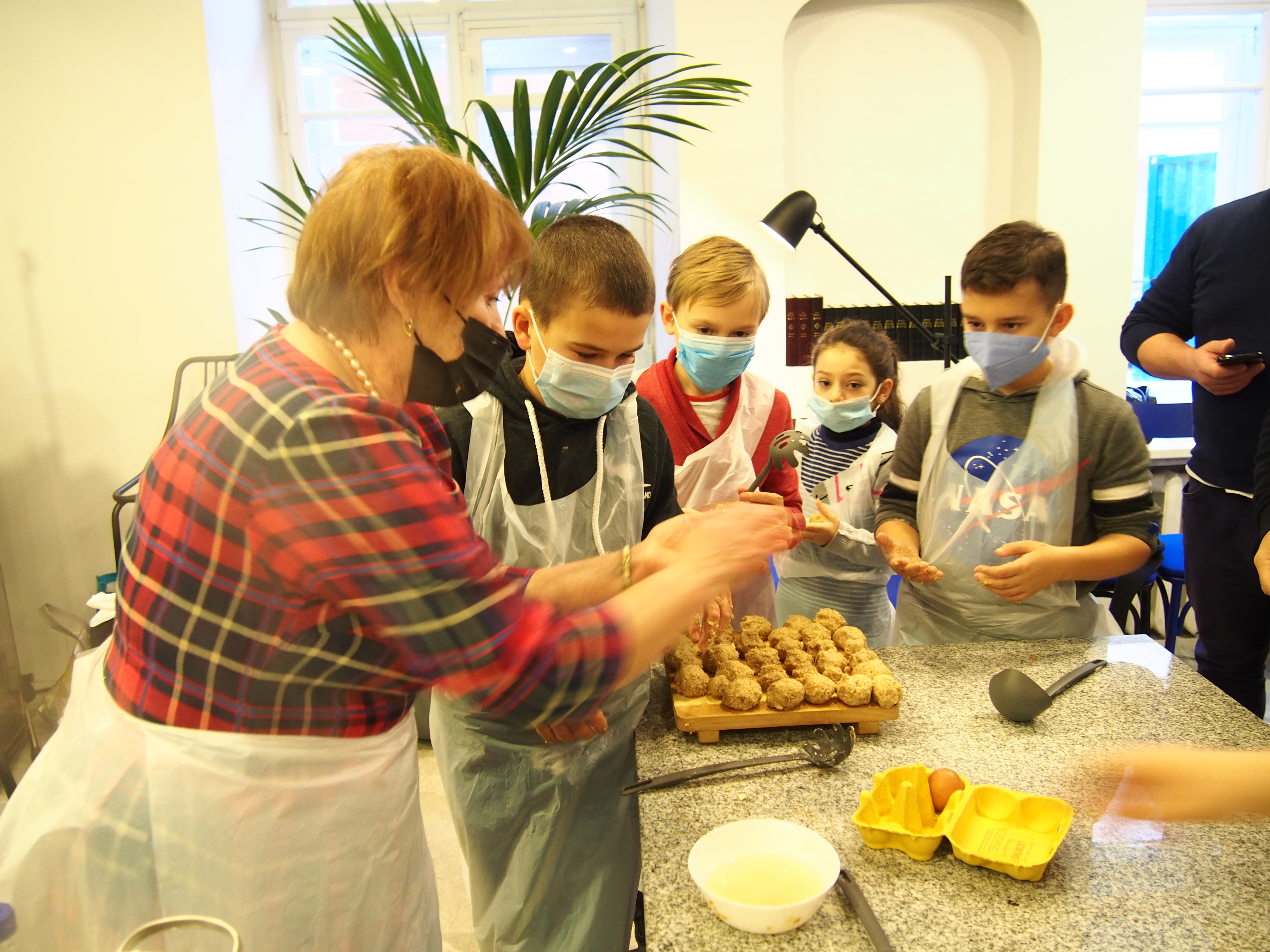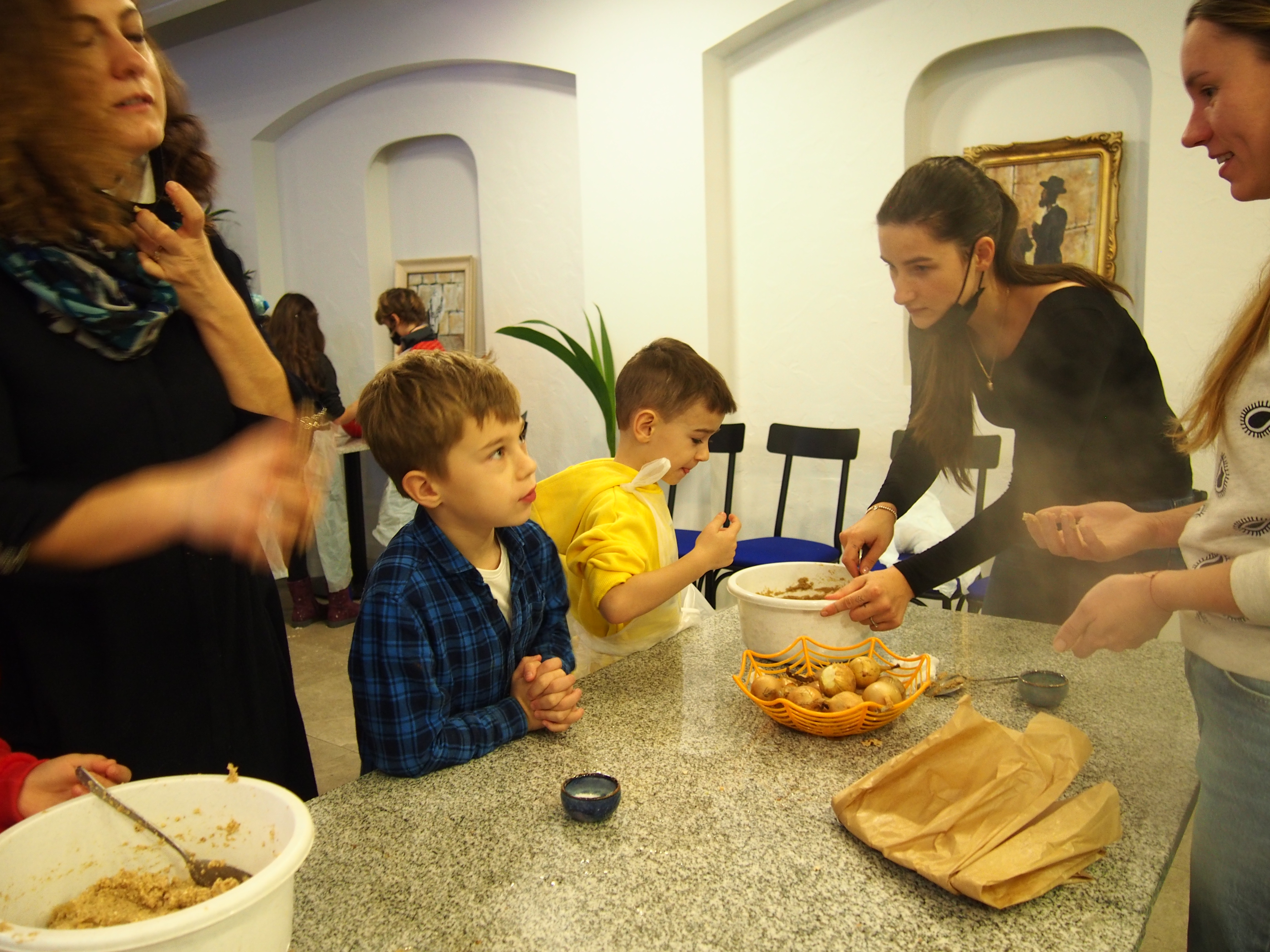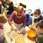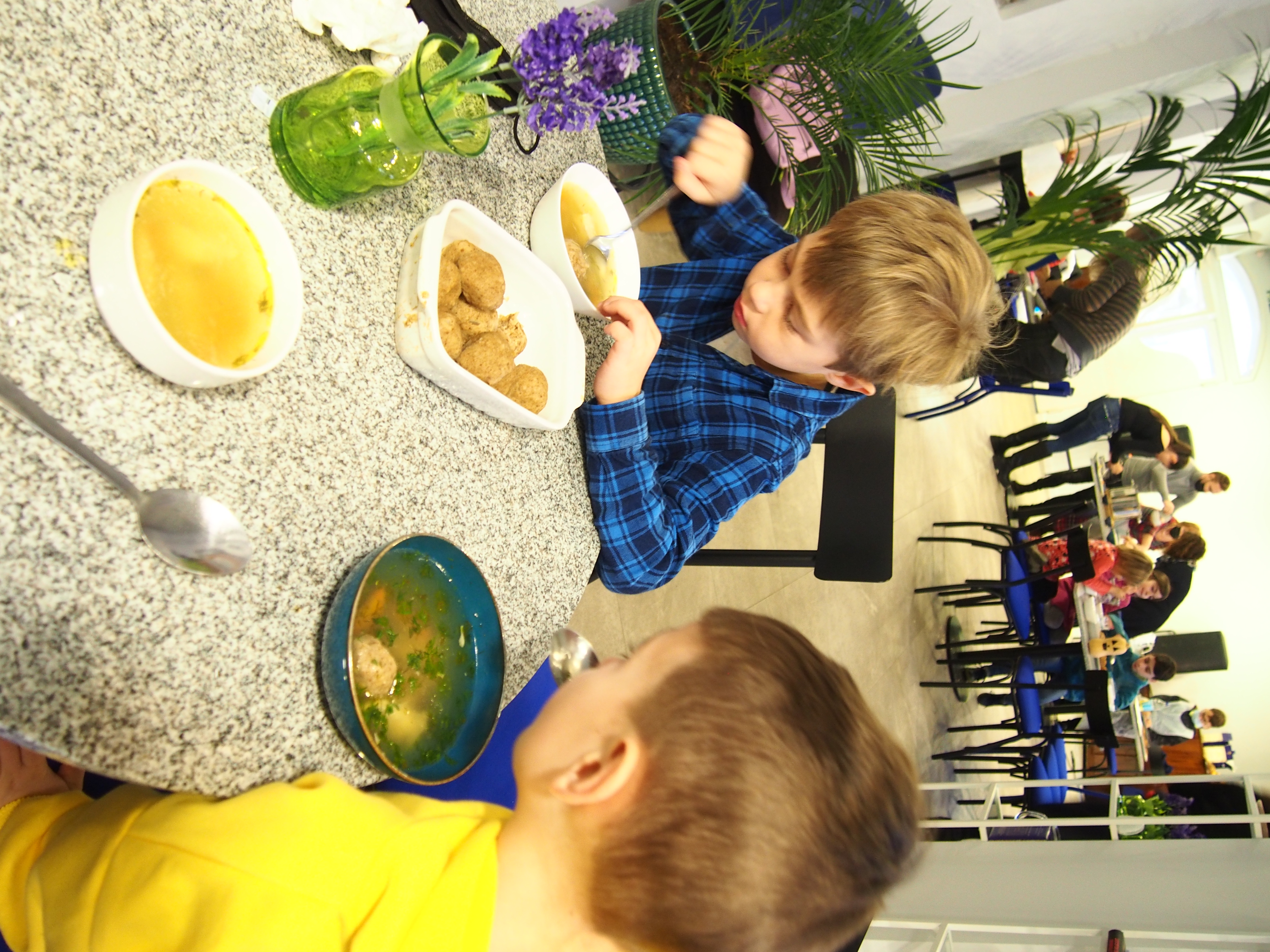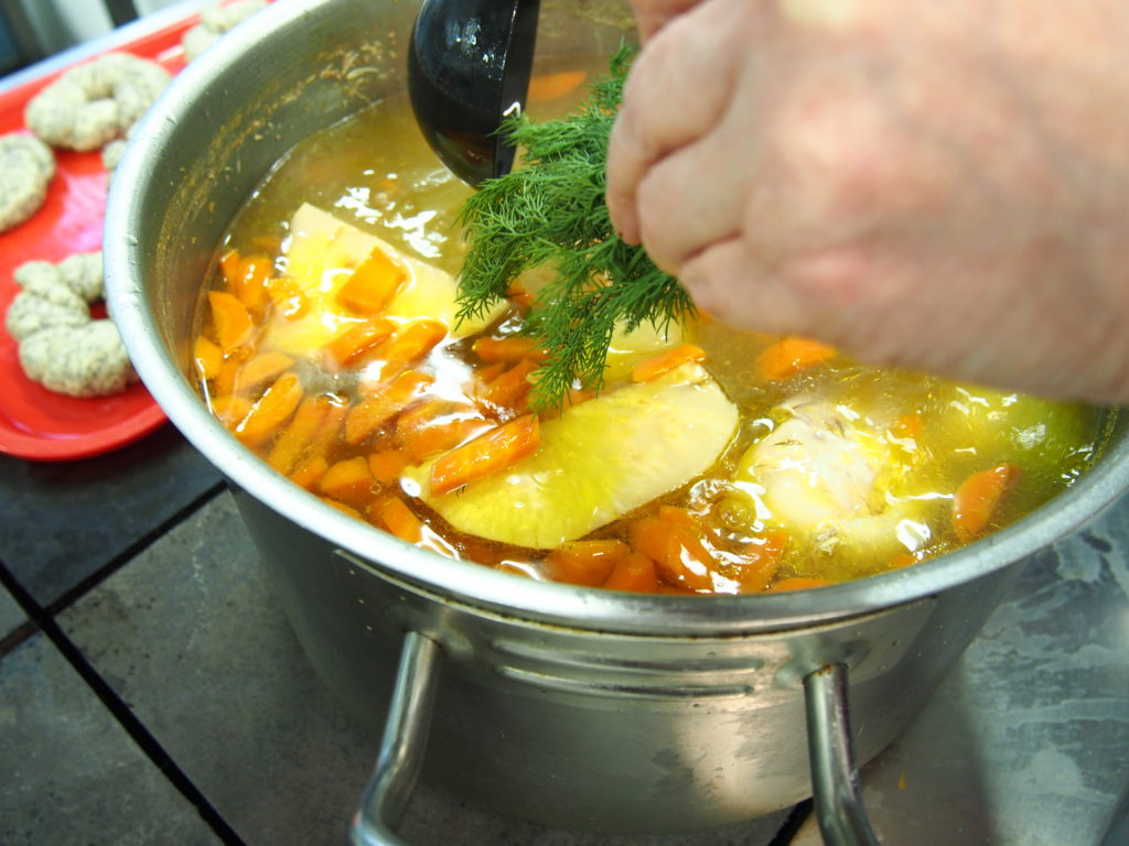 Nespėjome skaičiuoti nei vaikų nei maca kneidlach – virėm, kepėm, ragavom, prašėm pakartot, plojom balabostai Rivai už įmantrius receptus ir gerą nuotaiką. Taip prabėgo ketvirtas vaikų sekmadieninės mokyklėlės užsiėmimas #KinderTiš – vaikų stalas. Nuo 8 ryto jau virė višta puode – gaminome žydišką peniciliną – arba žydišką buljoną su macos kukuliais. Skanaus ir laukiame po dviejų savaičių edukacijoje “Chanukos Strabūklas”. #BalabostaRiva