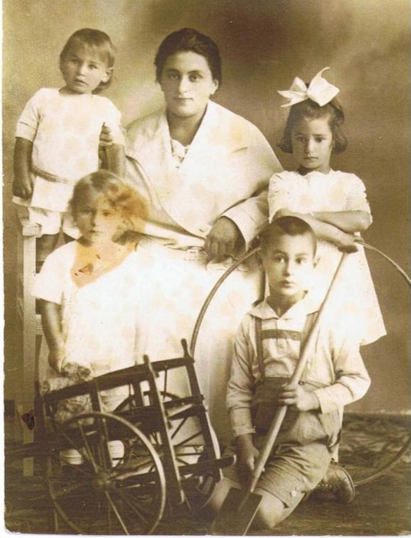 Nuotraukoje Lidyjos ir Šimono Šeinkerių šeimoje Rygoje gime dukros: Betty ir Rachel ; sūnūs : Benjaminas , Arkadijus ant kėdės.