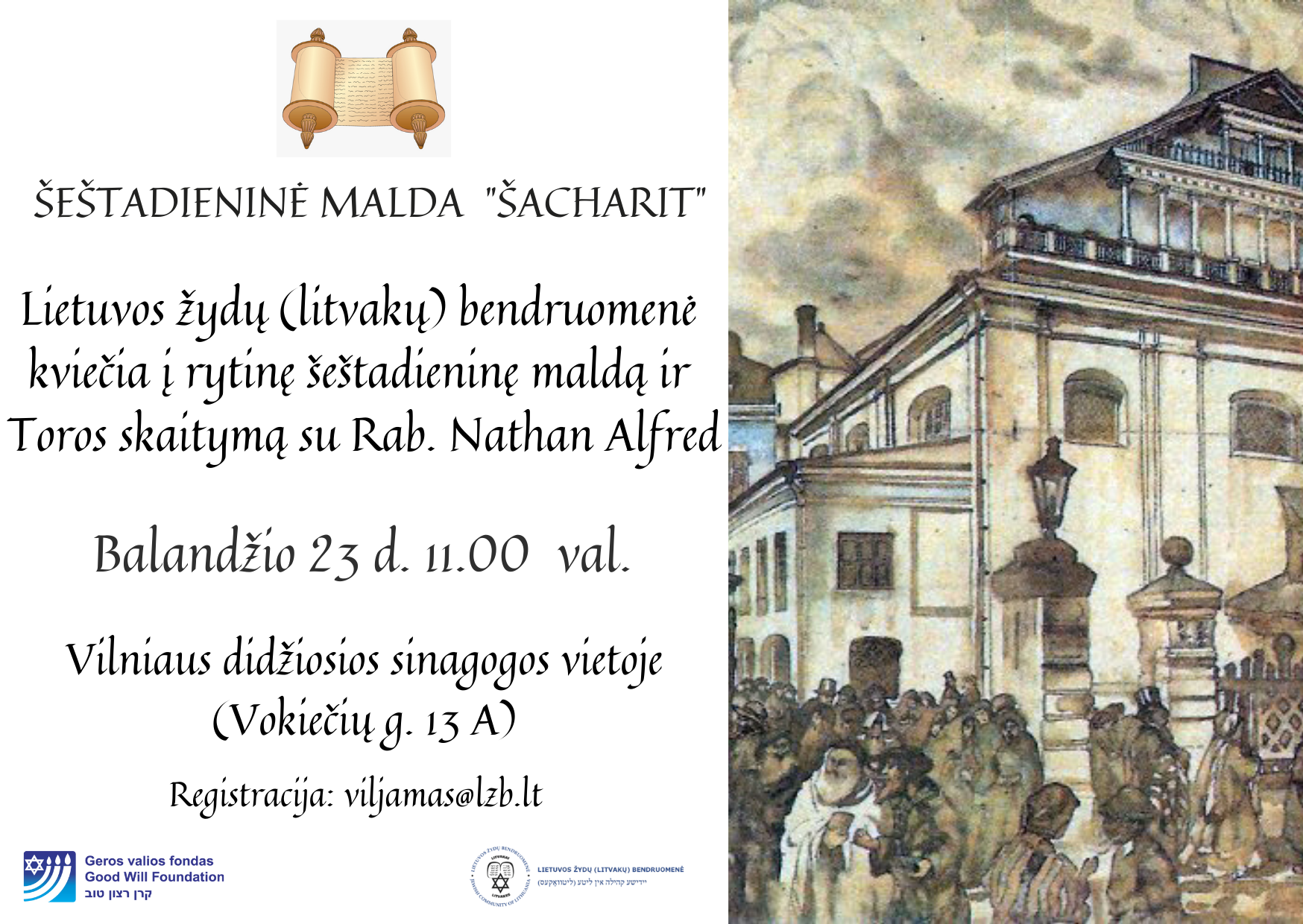 Šeštadienio malda ”Šacharit” 2022-04-192022-04-22 ← Užuojauta Balandžio 28 d. Pasaulis minės Yom Hashoa – Holokaustų aukų atminimo dieną →