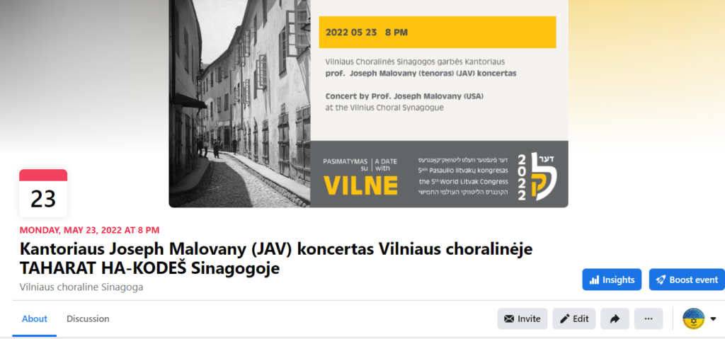 Dalyvauja garsus žydų liturginės muzikos atlikėjas, tenoras – kantorius Joseph Malovany.