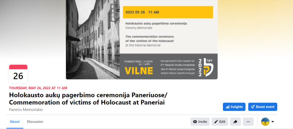 Holokausto aukų pagerbimo ceremonija Paneriuose/ Commemoration of victims of Holocaust at Paneriai
