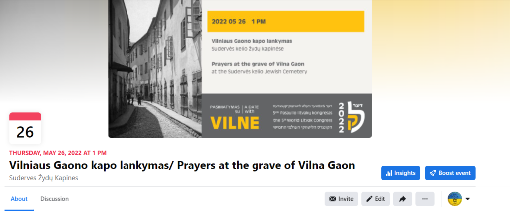 – Apsilankymas sovietinio režimo žiauriai sunaikintose žydų kapinėse bei Holokausto aukų pagerbimas prie memorialo „Liūdinti žydų motina“.