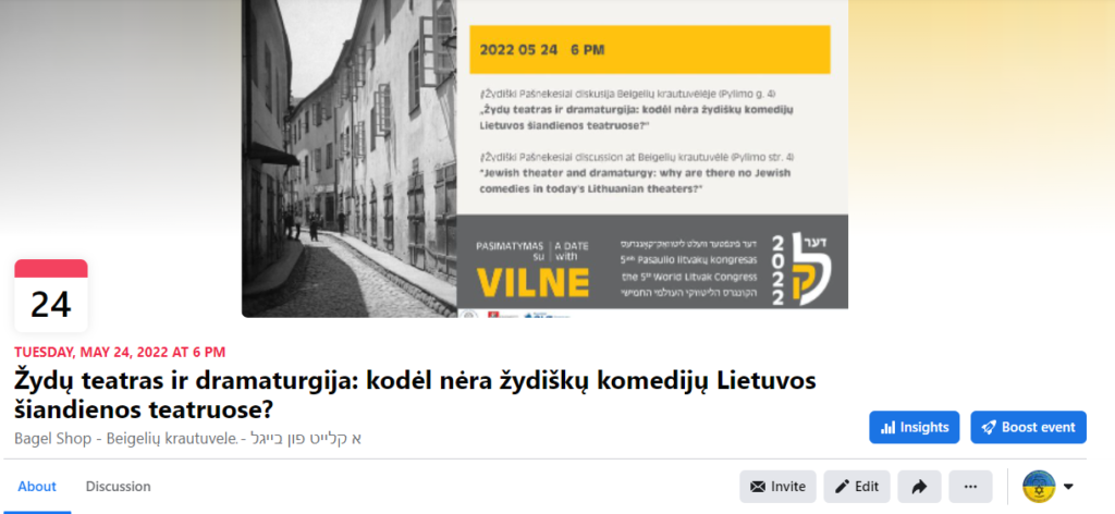 Diskusijų klubas #ŽydiškiPašnekesiai pristato naują, Pasaulio Litvakų kongreso proga rengiamą diskusijos temą “Žydų teatras ir dramaturgija: kodėl nėra žydiškų komedijų Lietuvos šiandienos teatruose?”