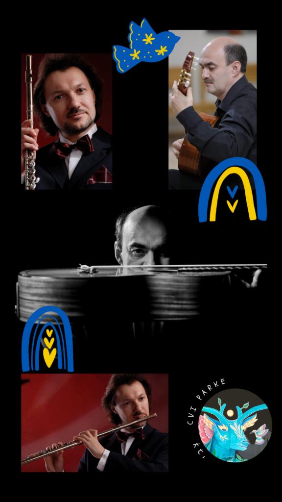 Cvi Parke ypatingas renginys – mums didelė garbė priimti Nacionalinio Ukrainos filharmonijos orkestro solistus Jurijų Shutko ir Andrii Ostapenko. Virtuozai klausytojus žavi detalių įmantrumu, spalvinga muzikos interpretacija ir stiliaus pojūčiu. Nuo 18:00 iki vidurnakčio mūsų parkas alsuos auksinėmis fleitos ir romantiškomis gitaros melodijomis. Laukiame Jūsų!!!