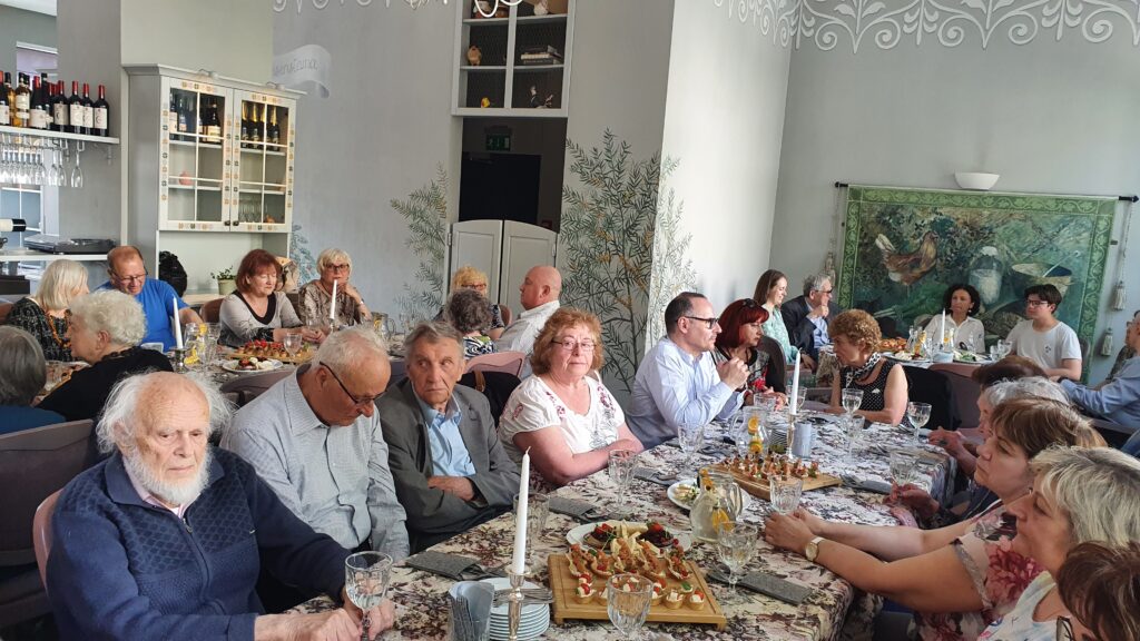 Prie vaišių stalo restorane „Višta puode“ susėdo kelios dešimtys žmonių, kurie dalijosi įspūdžiais ir bendravo. Skambėjo dainos jidiš ir hebrajų kalbomis, kanklėmis, saksofonu, klavišiniais atliekama muzika. Vieni popietės dalyvių – Juozas Straupis su anūke Monika Straupyte. J.Straupis buvo vos ketverių, kai jo tėtis ir mama, Juozas ir Bronislava, kuriems vėliau suteikti Pasaulio tautų teisuolių vardai, išgelbėjo 24 žmones. Pas save namuose priglaudė septynis, kitiems suorganizavo apgyvendinimą pas kaimynus. Rūpintis jais padėjo ir kunigai, bendruomenė.