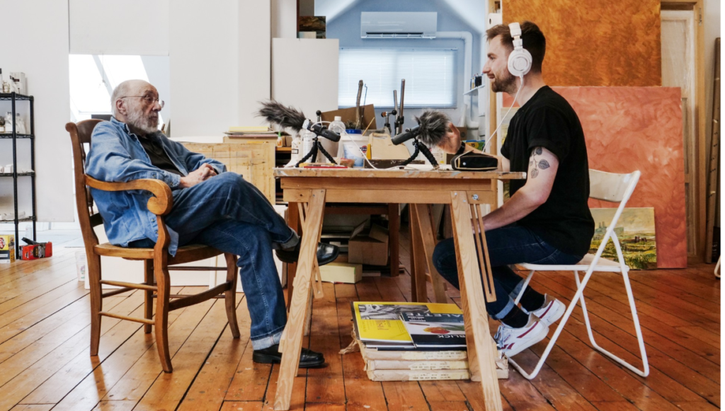 Samuelį baką kalbina podkasto autorius Karolis Vyšniauskas, foto Ieva Lygnugarytė
