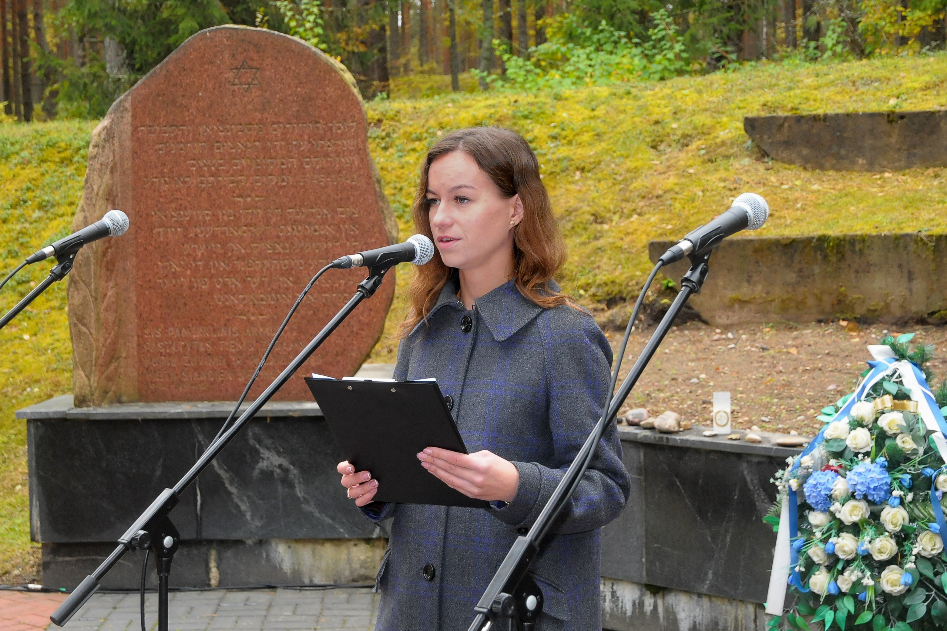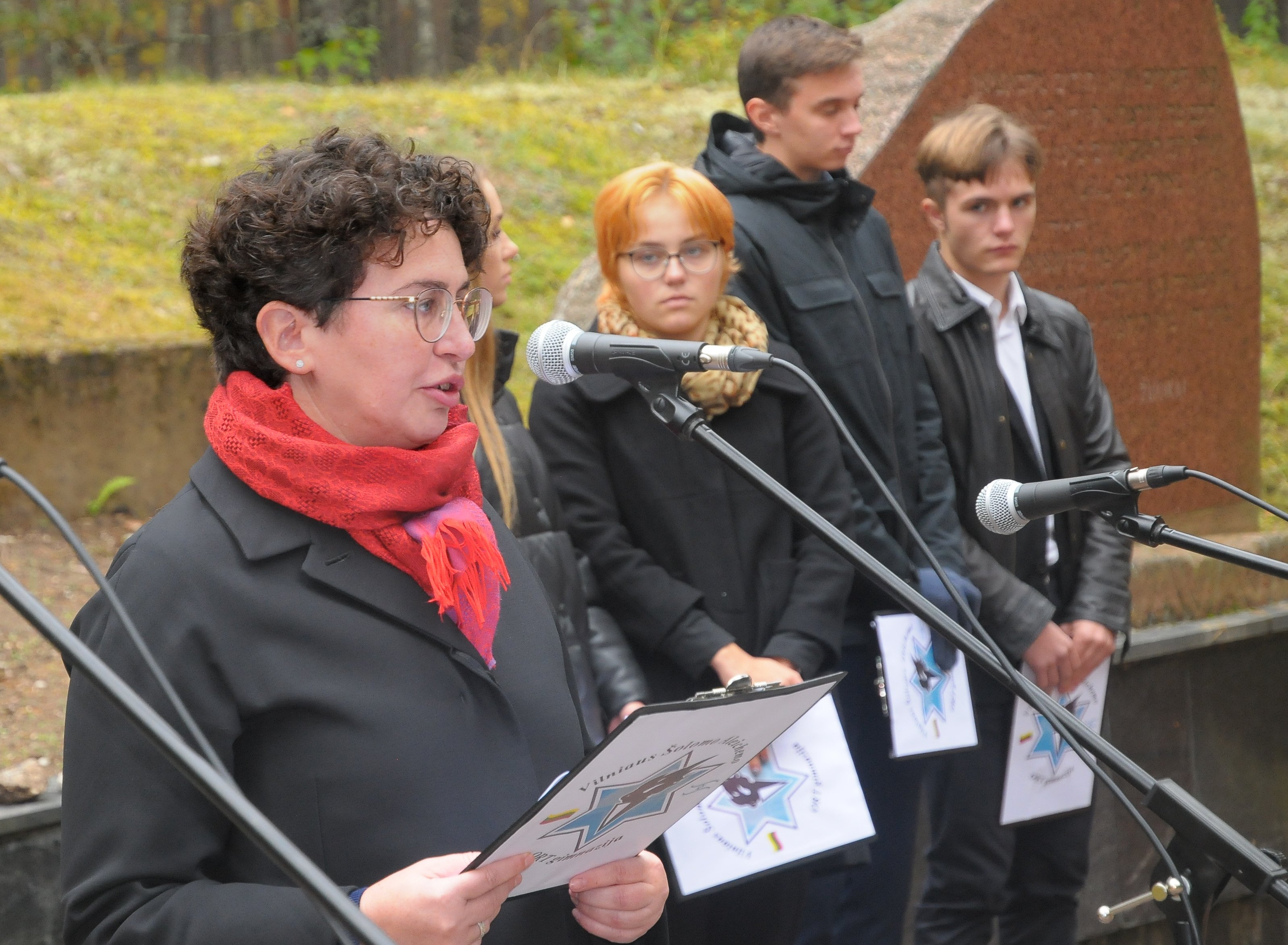 Tęsiant minėjimą prie Švenčionių apskrities žydų nužudymo vietos Memorialo – vedančioji Kristina Sizonova pradėjo eilėraščiu „Po tavom žvaigždėtom baltom“ parašytu poeto Avrom Sutzkever Vilniaus gete 1943m.