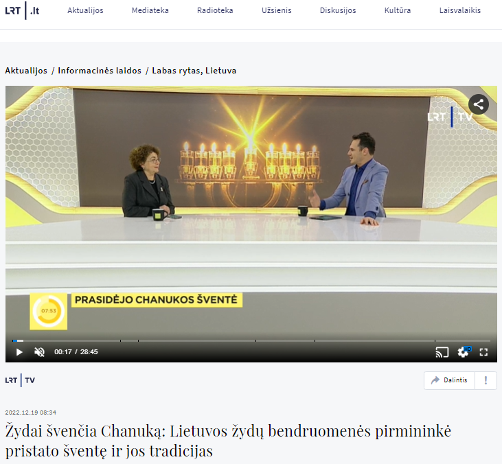 Prasidėjo Chanukos šventė, minima viso pasaulio žydų. Šiemet jos pabaiga sutampa su viena didžiausių katalikų pasaulio švenčių – Kalėdomis. Apie šią šventę ir jos tradicijas pasakoja Lietuvos žydų bendruomenės pirmininkė Faina Kukliansky.