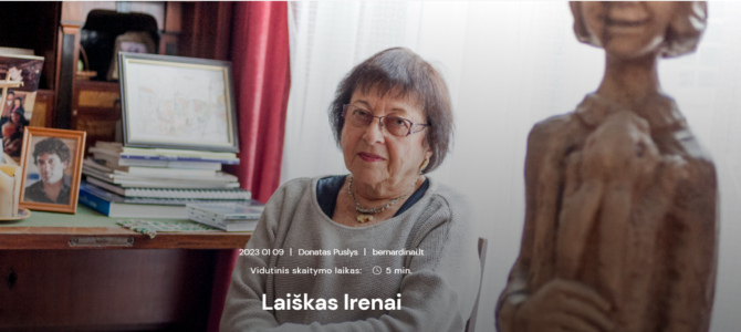 Miela Irena, pažadėjau apie Tave parašyti, tačiau jau valandą sėdžiu ir žvelgiu į tuščią ekraną. Pradedu rašyti ir čia pat viską ištrinu. Nenoriu kartotis. Bijau būti sentimentalus ir išskysti skųsdamasis, kaip man šiandien Tavęs trūksta. Kita vertus, bandau išvengti ir puikybės spąstų, kad viena ar kita mudviejų bičiulystės istorija netaptų tiktai proga prieš visus pasipuikuoti, jog kadaise gėrėme bruderšaftą, už kiekvieną ištartą „jūs“ mokėjome vienas kitam po litą ar eurą baudos ir buvome artimi draugai.