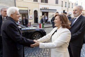 Italijos prezidentas Sergio Mattarella pasitinka atvykusią šalies žydų bendruomenės pirmininkę Noemi di Segni / IRP nuotr.