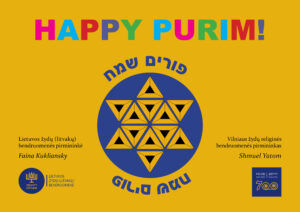 Visos Lietuvos žydų (litvakų) bendruomenės vardu noriu nuoširdžiausiai pasveikinti Jus su džiaugsminga Purimo švente!