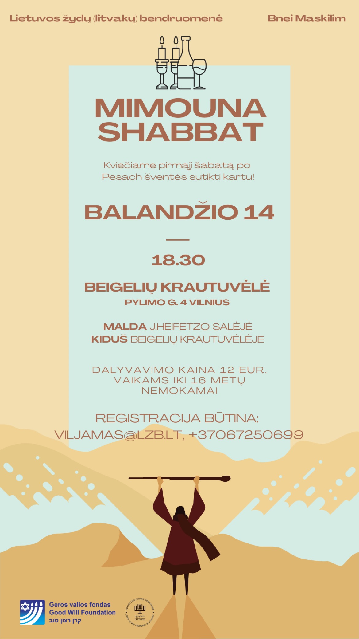 Kviečiame pirmąjį šabatą po Pesach šventės sutikti kartu! 2023-04-072023-04-10 ← Premjerė sveikina Lietuvos ir pasaulio žydus Pesacho proga Su Šv. Velykom! →