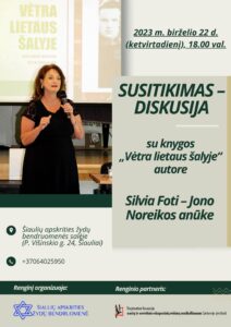 Šiaulių apskrities žydų bendruomenė kviečia į susitikimą – diskusiją su knygos „Vėtra lietaus šalyje“ autore, Jono Noreikos anūke Silvia Foti.