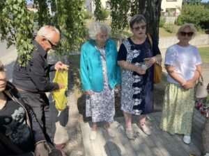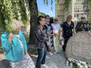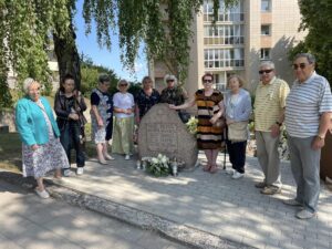 Šiaulių krašto žydų bendruomenė prie paminklo, pastatyto vietoje, žyminčioje geto vartus, gėlėmis, žvakėmis, akmenėliais ir mintimis pagerbė nužudytus žmones.