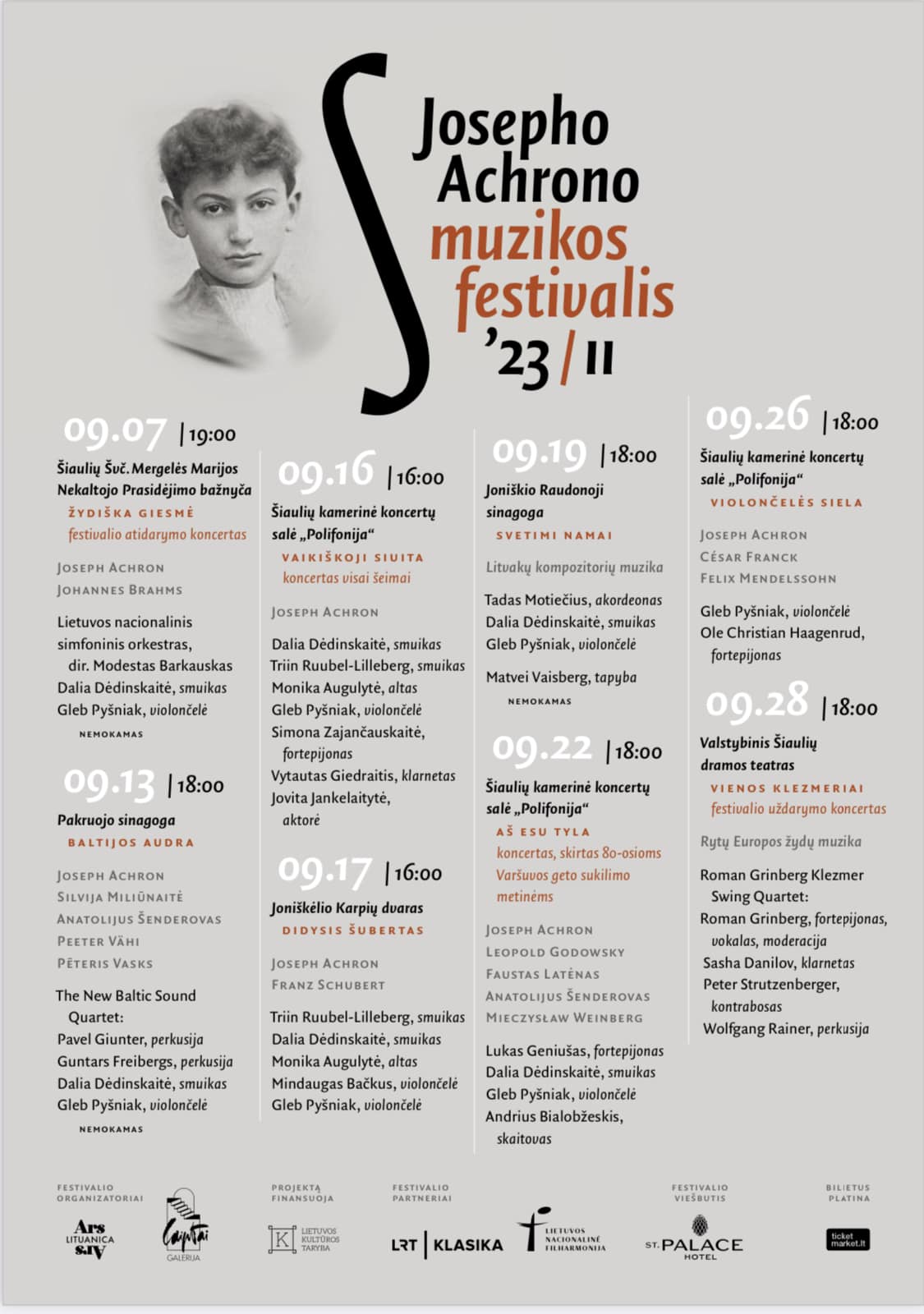 „Nuoširdžiai džiaugiamės, kad Josepho Achrono asmenybė ryškėja Lietuvos muzikos kontekste ir dar labai jaunas festivalis geba pasikviesti tokius ypatingus svečius ir didelius kolektyvus! Nekantriai laukiame susitikimo su klausytojais ir tikime, kad kiekvienu koncertu kuriame kažką prasmingo, įsimintino ir gražaus!” – į festivalio koncertus Jus kviečia festivalio idėjos autoriai, įkūrėjai ir meno vadovai smuikininkė Dalia Dėdinskaitė ir violončelininkas Gleb Pyšniak bei festivalio įkvėpimo šaltinis bei varomoji jėga, direktorė Janina Ališauskienė. Iki prasmingų ir šiltų susitikimų!