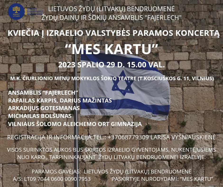 LŽB ir „Fajerlech“ kviečia į paramos Izraeliui koncertą JAU ŠĮ SEKMADIENĮ!!!!