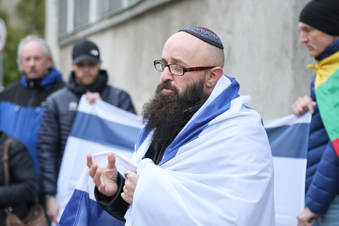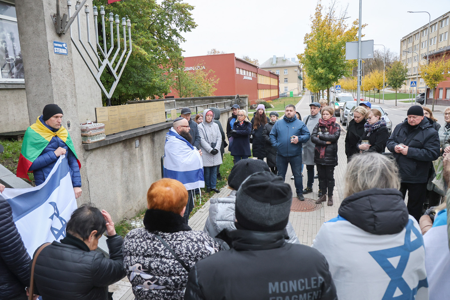 Prie Šiaulių apskrities žydų bendruomenės pastato Izraelio karo aukos šį mėnesį pagerbtos antrą kartą. Pirmą kartą žydai, lietuviai, ukrainiečiai rinkosi į Izraelio palaikymo akciją spalio 9-osios vakarą, praėjus dviem dienoms po prasidėjusio karo.