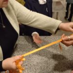 „Daugelio mūsų artimieji – vaikai, broliai, sesės, anūkai – šiuo metu kovoja Izraelyje. Nėra akimirkos, kad apie juos negalvotume. Nėra akimirkos, kad mūsų širdys neverktų dėl nelaisvėje laikomų pagrobtų įkaitų. Todėl, solidarizuodamiesi su jų artimaisiais, riešus pasipuošėme geltonomis juostelėmis“, – pasakojo vakaro organizatorė, Lietuvos žydų (litvakų) bendruomenės programų direktorė Žana Skudovičienė.