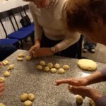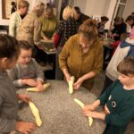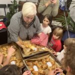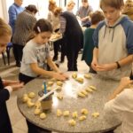 Moterys, merginos, mergaitės ir berniukai – daugiausia jaunos mamos su vaikais – linksmai klegėdami kepė Dovydo žvaigždės formos chalas, simbolizuojančias skydą ir apsaugą teroristų užpultai istorinei tėvynei.