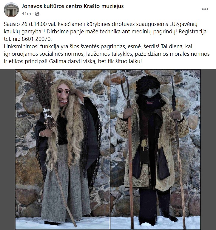 Vakar Jonavos kultūros centro Krašto muziejus paskelbė viešą kvietimą į Užgavėnių kūrybines dirbtuves, kuriame akivaizdžiai įžvelgėme žalingų ir šiandien kaip niekad pavojingų stereotipų apie žydų ir romų bendruomenes skatinimą.