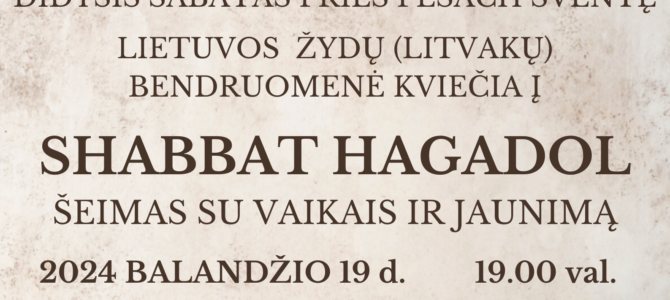 Lietuvos žydų (litvakų) bendruomenė kviečia visus į šeimynišką, jaukų, tradicijų kupiną vakarą, kuris taps pasiruošimu vienai svarbiausių žydų metų švenčių – Pesachui.