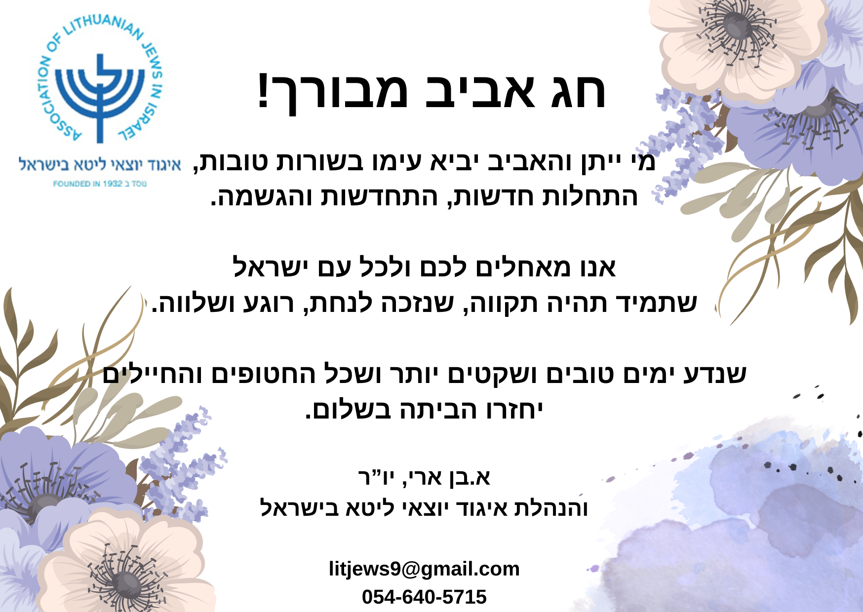 Žydų Išeivių iš Lietuvos Izraelyje Asociacijos sveikinimas