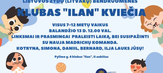 Legendinis, beveik 30 metų gyvuojantis vaikų klubas „ILAN” jau užaugino kelias aktyvių, žingeidžių, visuomeniškų bendruomenės narių kartas. Dabar jį lanko moksleiviai, kurių tėvai ir patys kažkada buvo šio klubo nariai. Čia jie mokosi litvakiškų tradicijų, randa bendraminčių, prasmingai ir linksmai leidžia laiką, tad kviečiame visus 7-12 metų vaikus jungtis prie senbuvių.