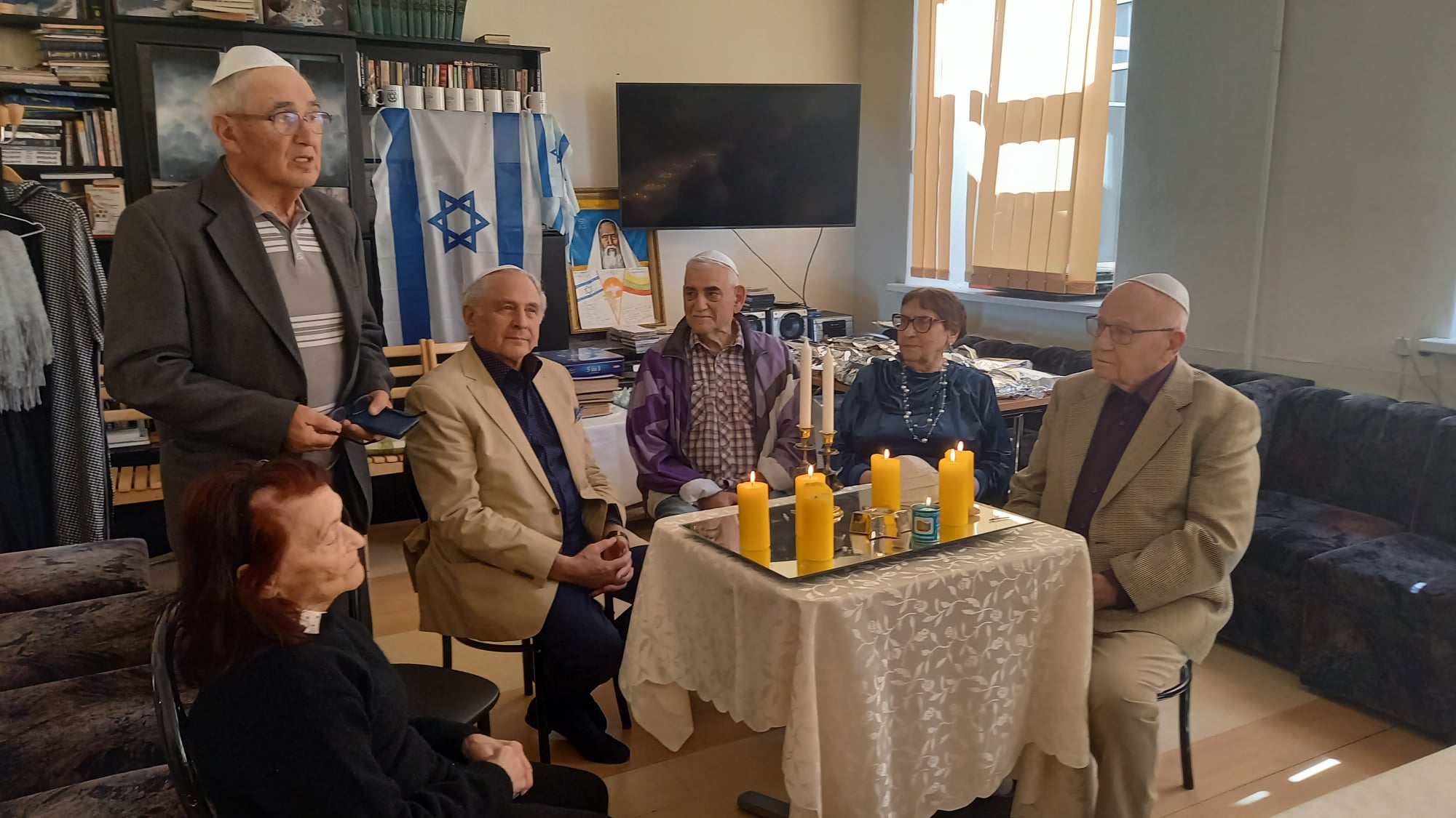 Praėjusį trečiadienį Lietuvos žydų (litvakų) bendruomenės programų direktorė Žana Skudovičienė į senjorų klubą sukvietė vadinamuosius karo vaikus. Jie uždegė žvakes, pagerbė ne tik 6 milijonus nacių aukų, bet ir „Hamas“ teroristų spalio 7-ąją užpulto Izraelio žuvusiuosius bei vis dar kalinamus įkaitus, dalijosi atsiminimais. Itin prasmingai skambėjo Kadiš ir El Male Rachamim maldos.