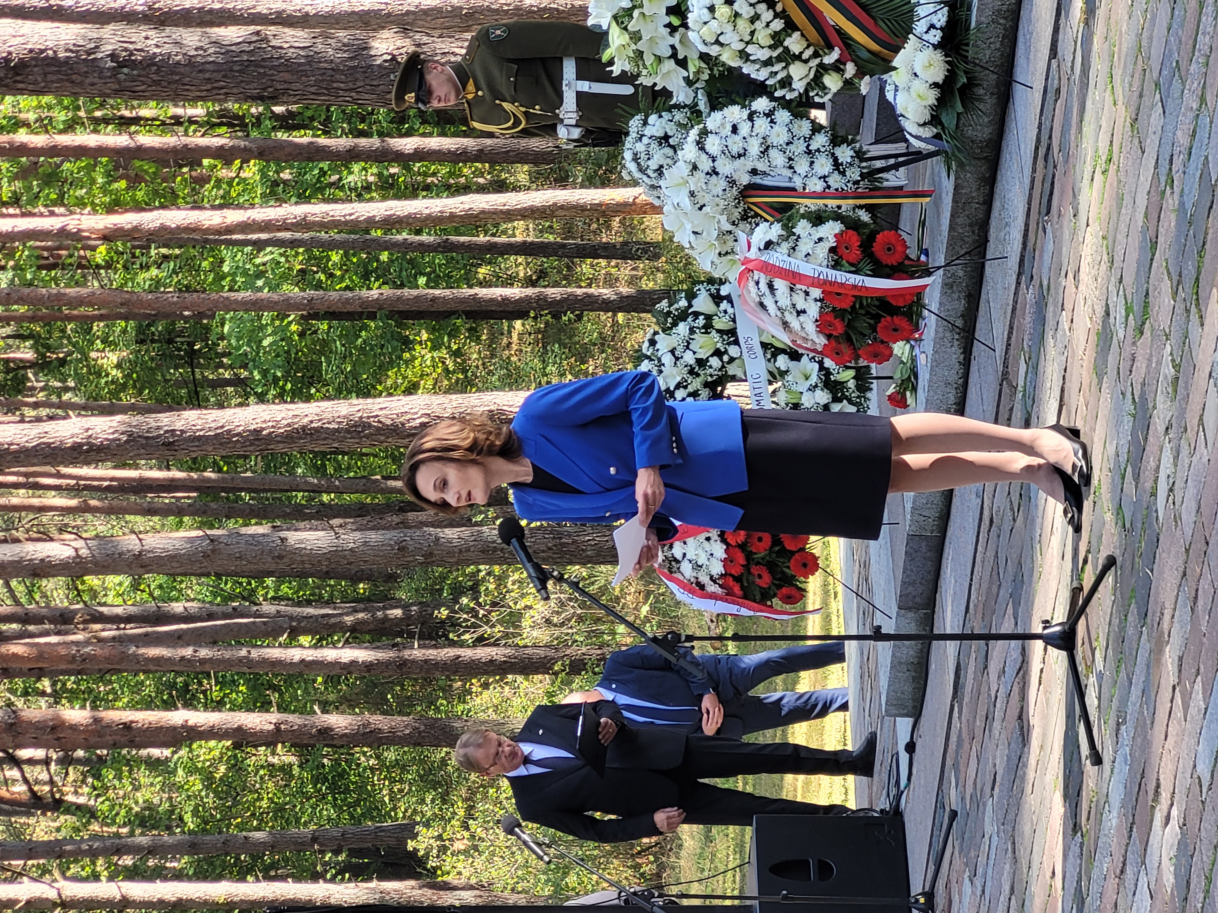 Ministrė Pirmininkė Ingrida Šimonytė savo kalboje pabrėžė kiekvieno pareigą ir šiandien stoti ginti žmogiškumo ir teisingumo, priešintis neapykantai ir diskriminacijai.